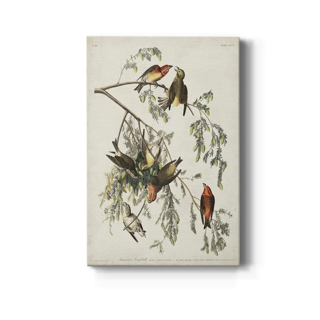 Pl 197 American Crossbill Premium Gallery Wrapped Canvas - Ready to Hang A premium hand stretched gallery wrapped canvas print created to last. Featuring a beveled a solid wood stretcher bar, each piece comes ready to hand 5 SIZES AVAILABLE 8''X12'' - Overall Size 16'X20'' - Overall Size 24''x32'' - Overall Size 30''x40'' - Overall Size 36''x48'' - Overall Size Each piece is made to order. Built to Last Each piece comes ready to hang Solid wood stretcher Fade and Water resistant Made domestically