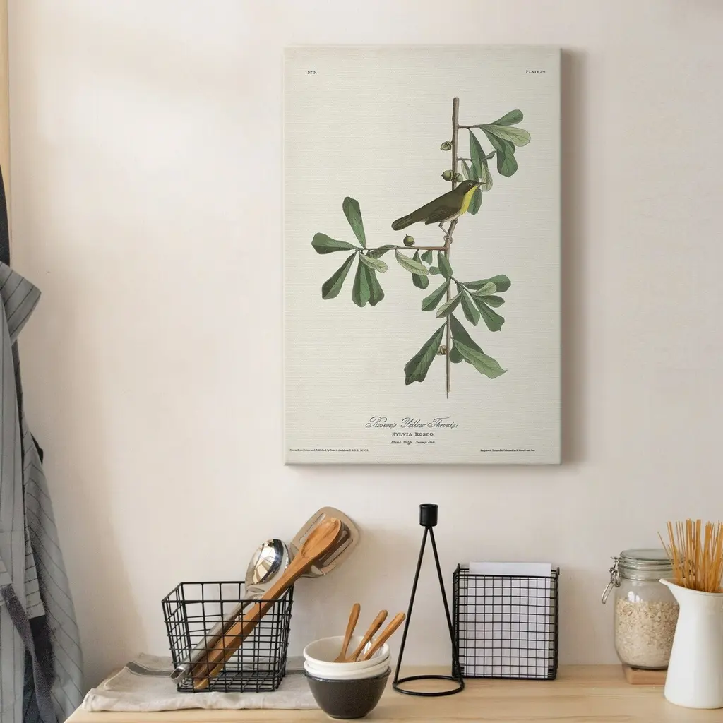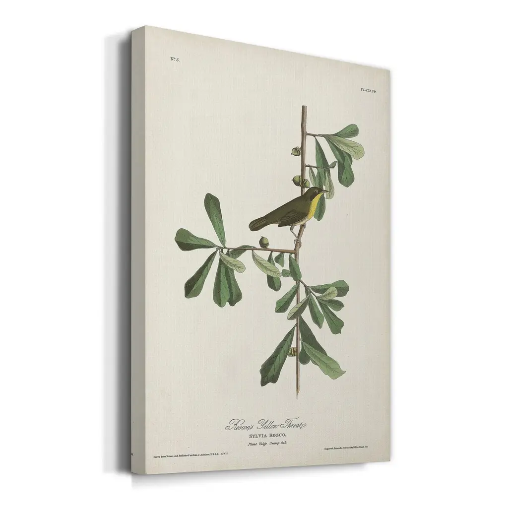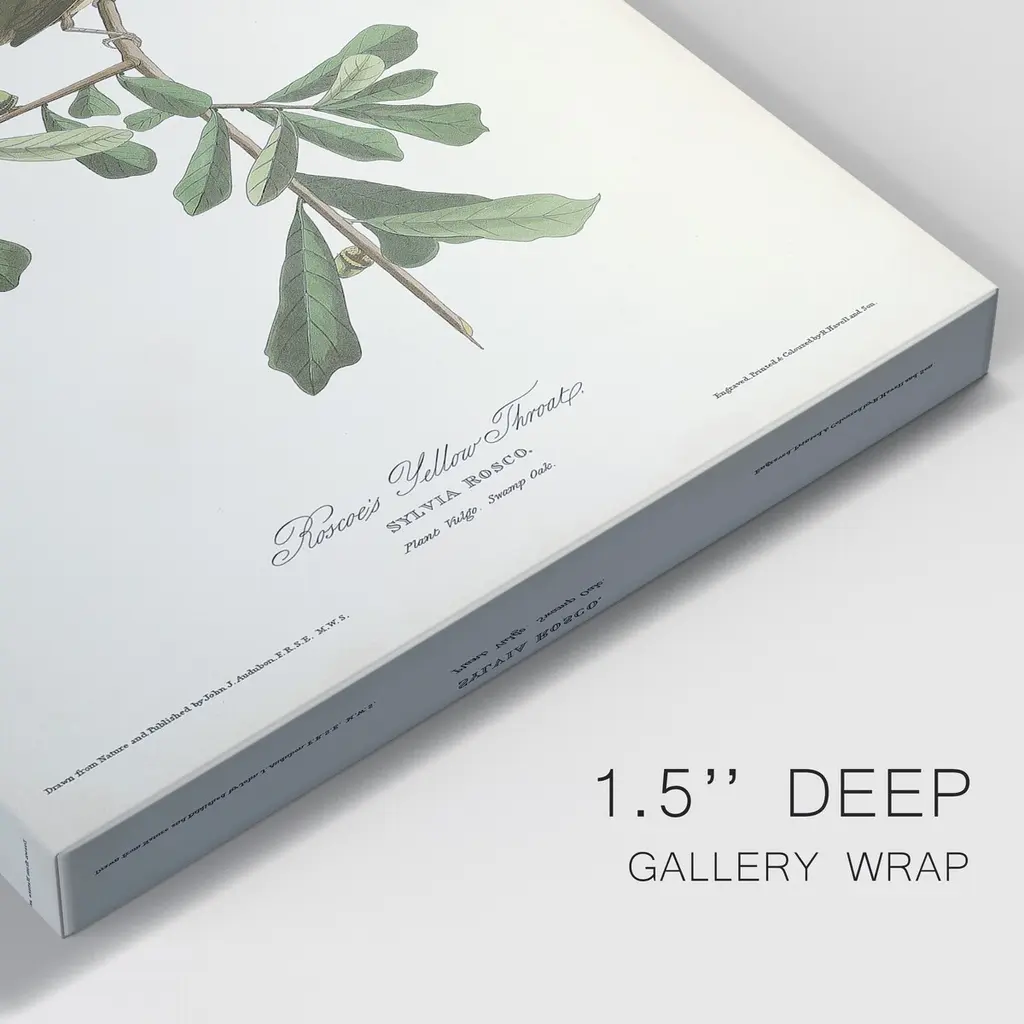 Pl. 24 Roscoe's Yellow Throat Premium Gallery Wrapped Canvas - Ready to Hang A premium hand stretched gallery wrapped canvas print created to last. Featuring a beveled a solid wood stretcher bar, each piece comes ready to hand 5 SIZES AVAILABLE 8''X12'' - Overall Size 16'X20'' - Overall Size 24''x32'' - Overall Size 30''x40'' - Overall Size 36''x48'' - Overall Size Each piece is made to order. Built to Last Each piece comes ready to hang Solid wood stretcher Fade and Water resistant Made domestically