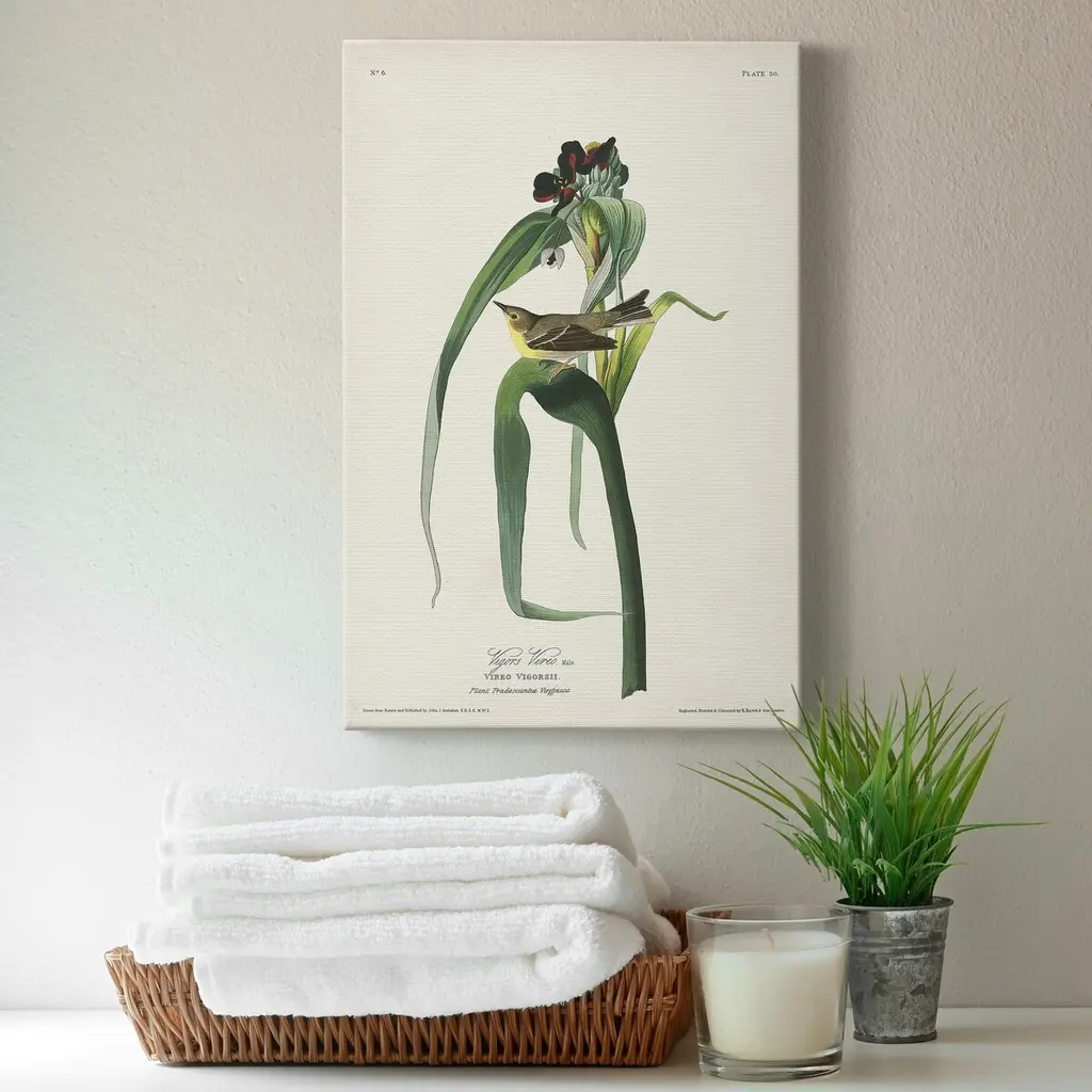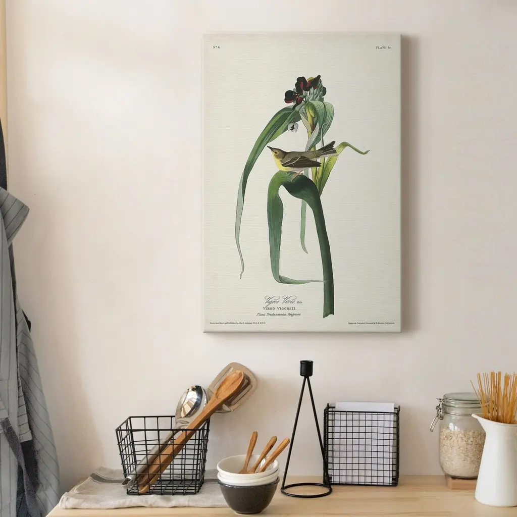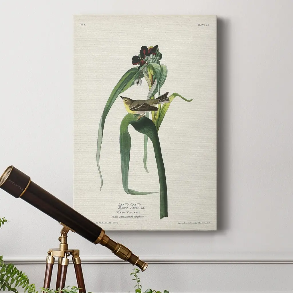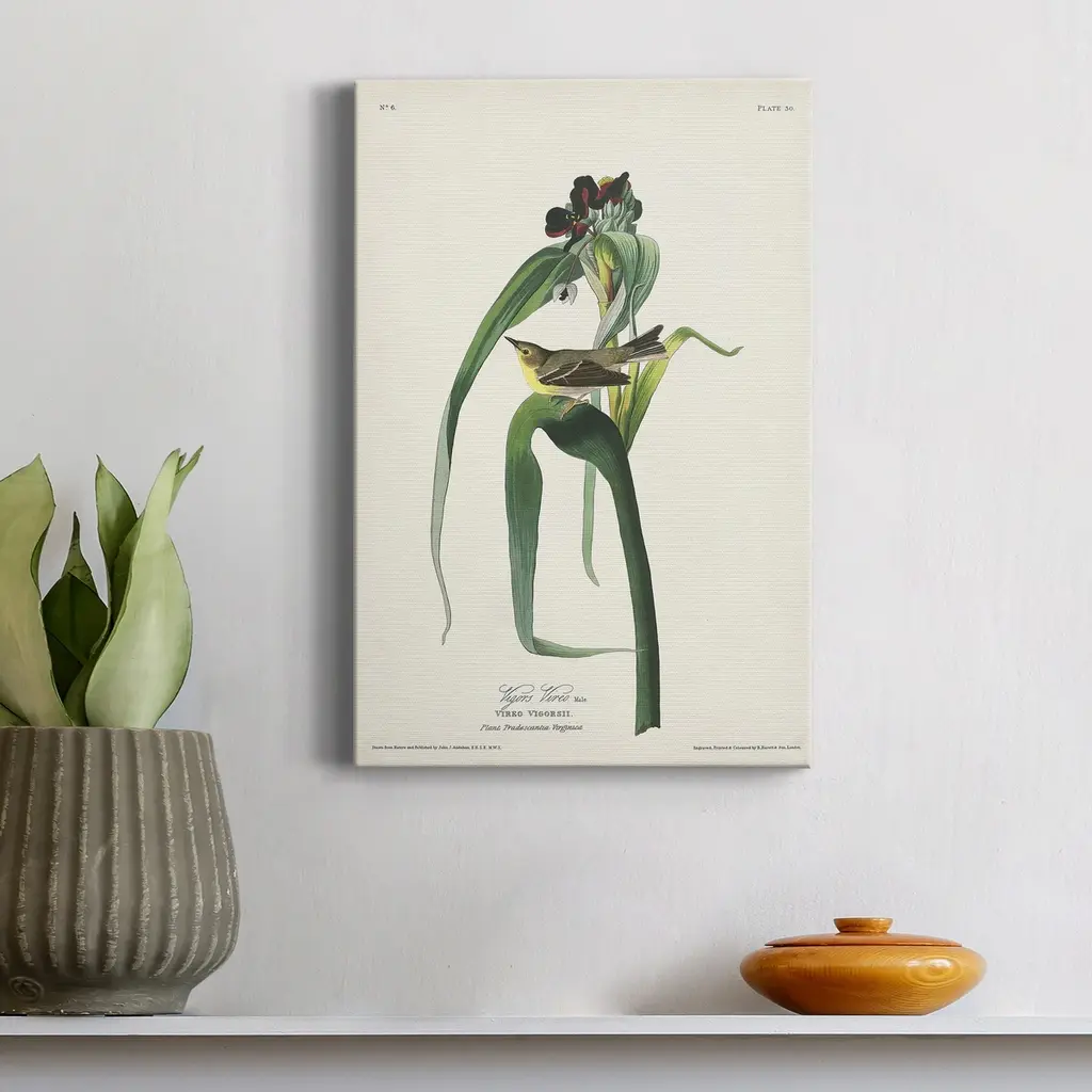 Pl. 30 Vigors Vireo Premium Gallery Wrapped Canvas - Ready to Hang A premium hand stretched gallery wrapped canvas print created to last. Featuring a beveled a solid wood stretcher bar, each piece comes ready to hand 5 SIZES AVAILABLE 8''X12'' - Overall Size 16'X20'' - Overall Size 24''x32'' - Overall Size 30''x40'' - Overall Size 36''x48'' - Overall Size Each piece is made to order. Built to Last Each piece comes ready to hang Solid wood stretcher Fade and Water resistant Made domestically