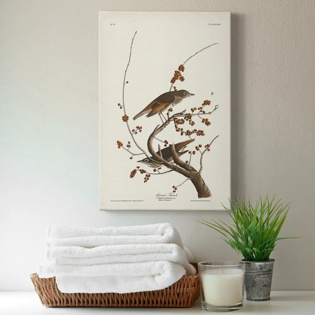 Pl. 58 Hermit Thrush Premium Gallery Wrapped Canvas - Ready to Hang A premium hand stretched gallery wrapped canvas print created to last. Featuring a beveled a solid wood stretcher bar, each piece comes ready to hand 5 SIZES AVAILABLE 8''X12'' - Overall Size 16'X20'' - Overall Size 24''x32'' - Overall Size 30''x40'' - Overall Size 36''x48'' - Overall Size Each piece is made to order. Built to Last Each piece comes ready to hang Solid wood stretcher Fade and Water resistant Made domestically