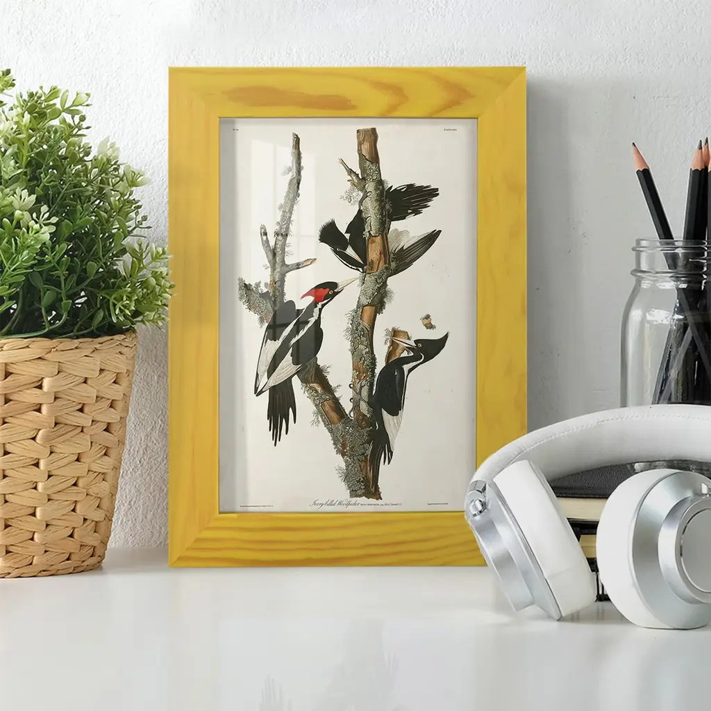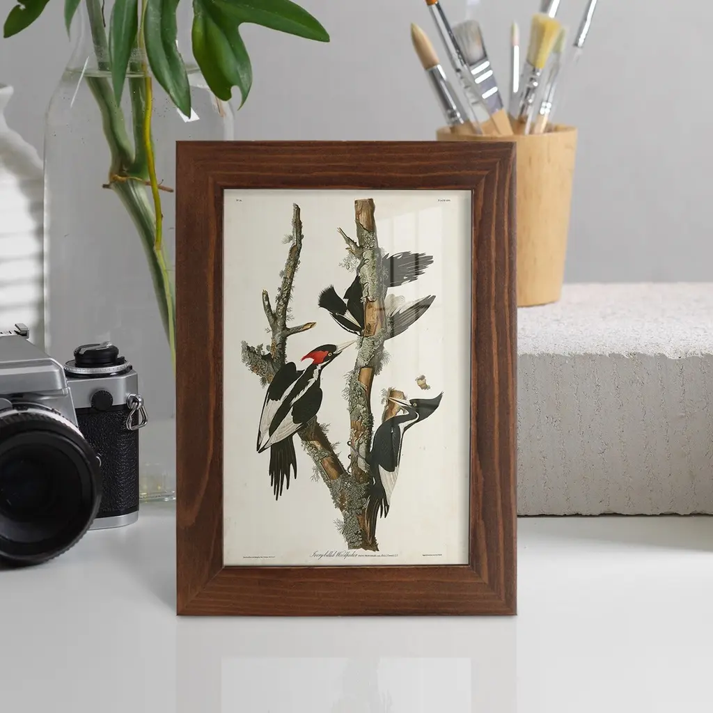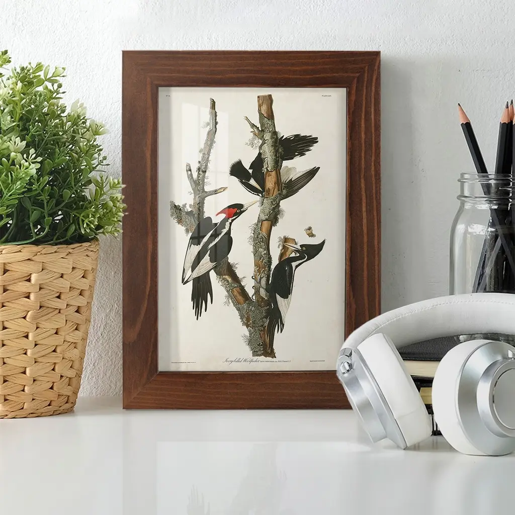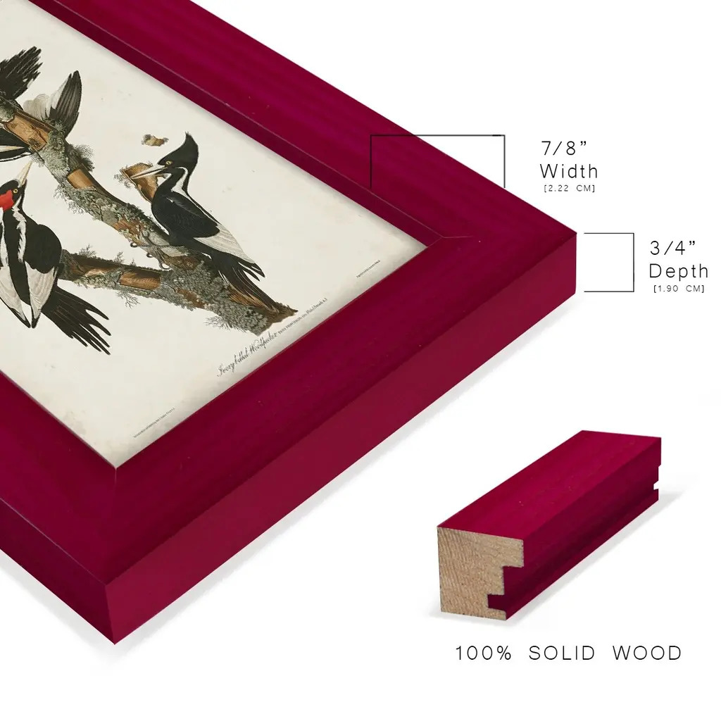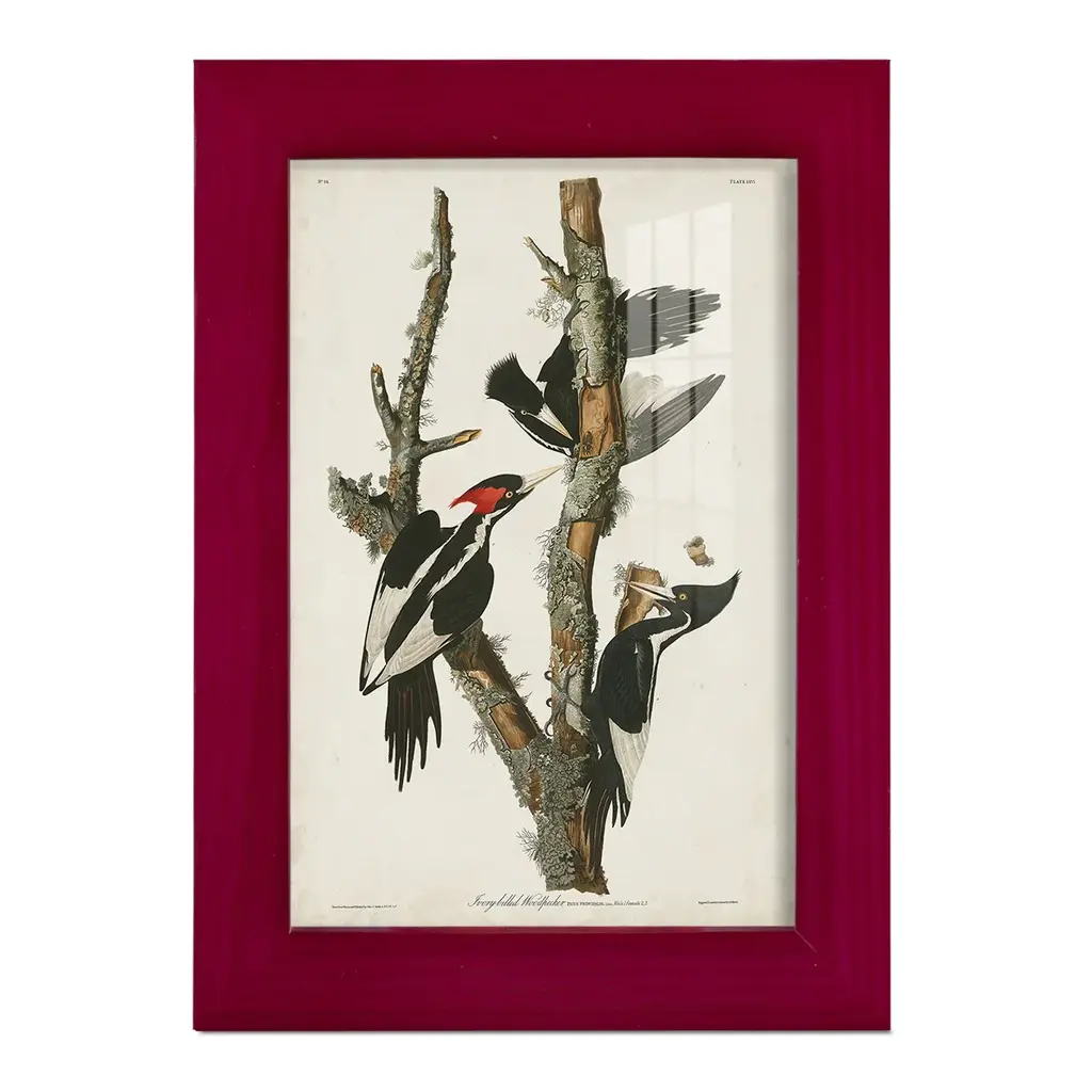 Pl. 66 Ivorybilled Woodpecker -EZ SWITCH Framed Print w/glass-Cherry Red A delightful, framed print. Featuring a solid wood frame with real wood glass. This premium print is giclee quality. In addition, every frame features a removable back and table top stand. This allows you to change your art in the future or to just stand the art on a table for a new look. We are sure you'll enjoy our new series of EZ SWITCH Framed Art. Solid Wood Frame Real Glass Removable / Replaceable Art Built in Tabletop Stand Sizes range from 4x6 up to 12x15 - buy just one or pair them up as sets as you see fit.