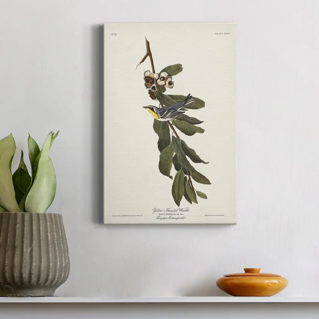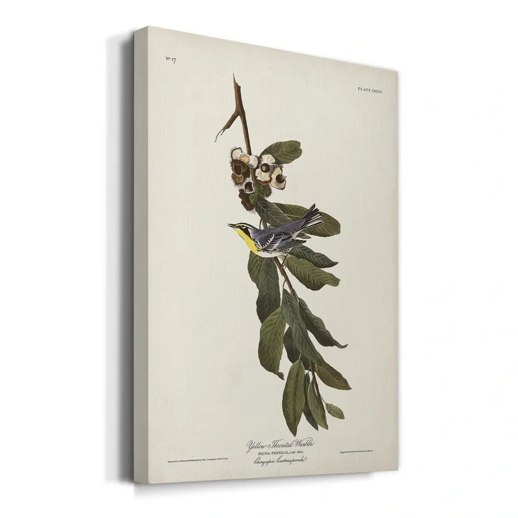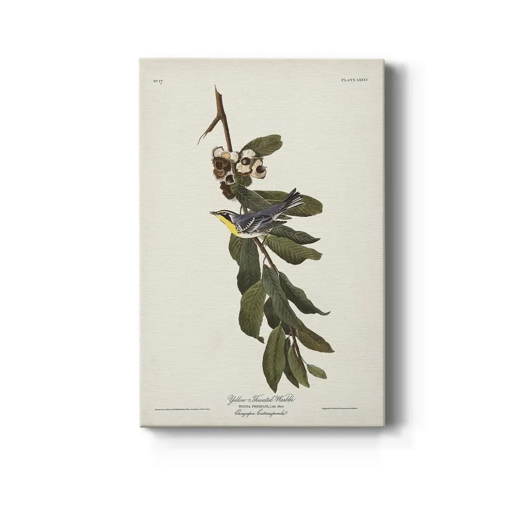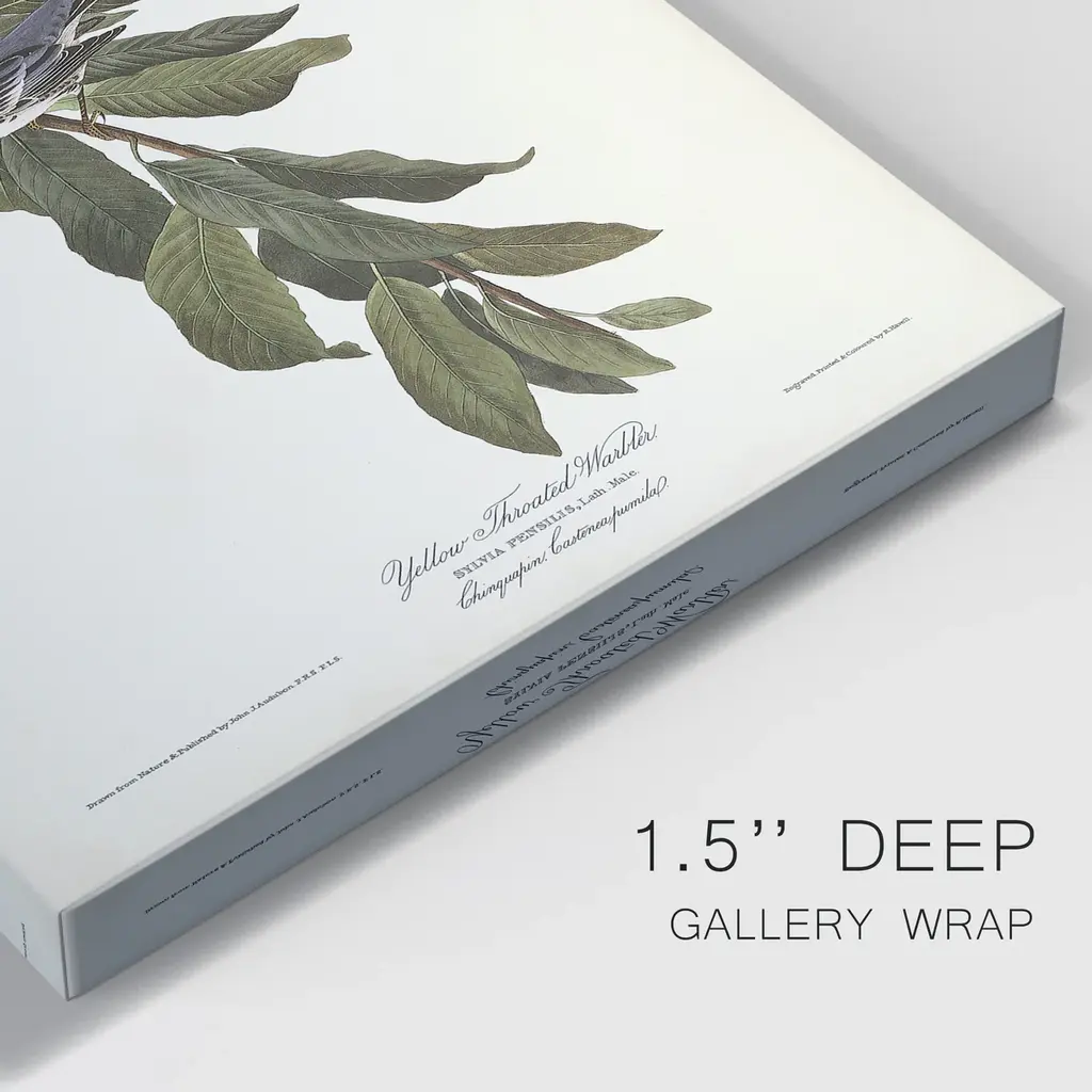 Pl. 85 Yellow-throated Warbler Premium Gallery Wrapped Canvas - Ready to Hang A premium hand stretched gallery wrapped canvas print created to last. Featuring a beveled a solid wood stretcher bar, each piece comes ready to hand 5 SIZES AVAILABLE 8''X12'' - Overall Size 16'X20'' - Overall Size 24''x32'' - Overall Size 30''x40'' - Overall Size 36''x48'' - Overall Size Each piece is made to order. Built to Last Each piece comes ready to hang Solid wood stretcher Fade and Water resistant Made domestically