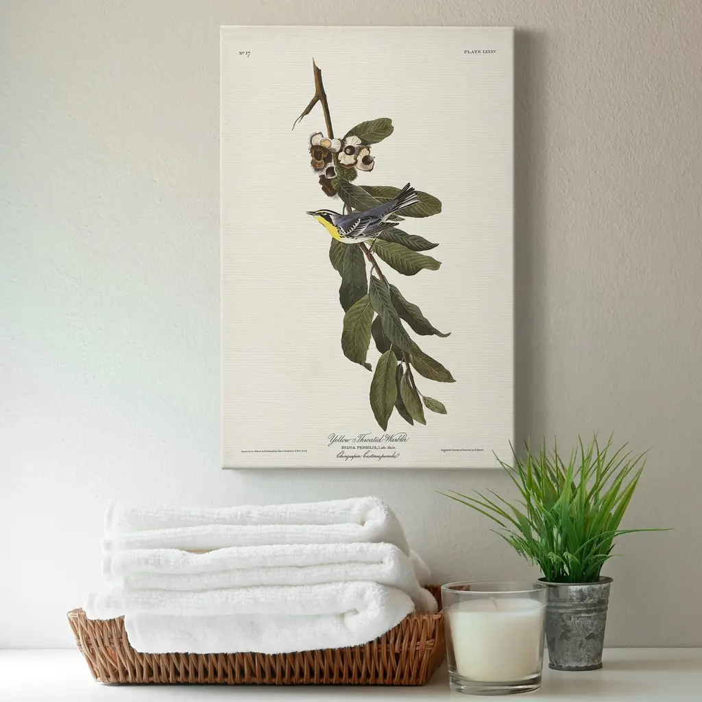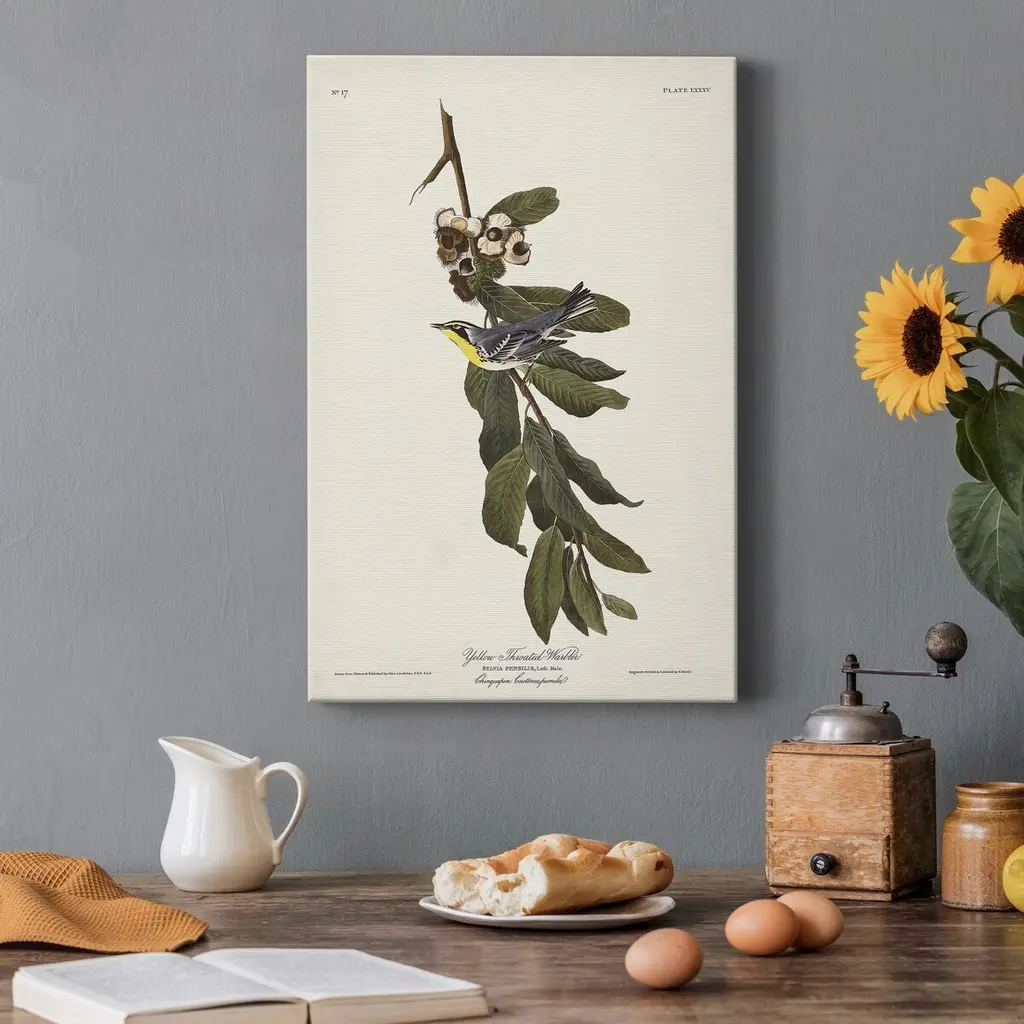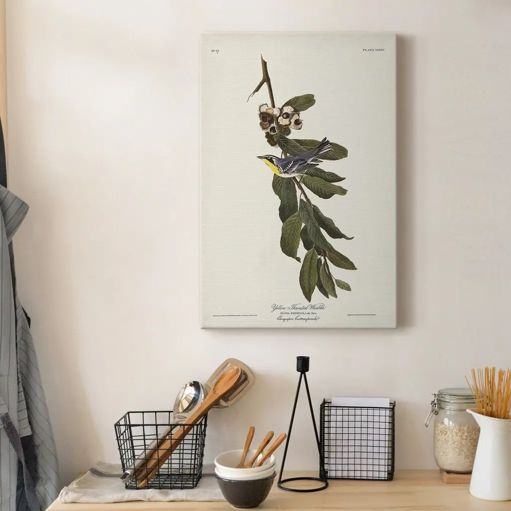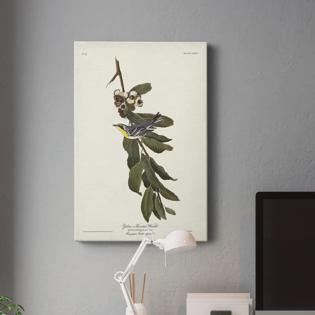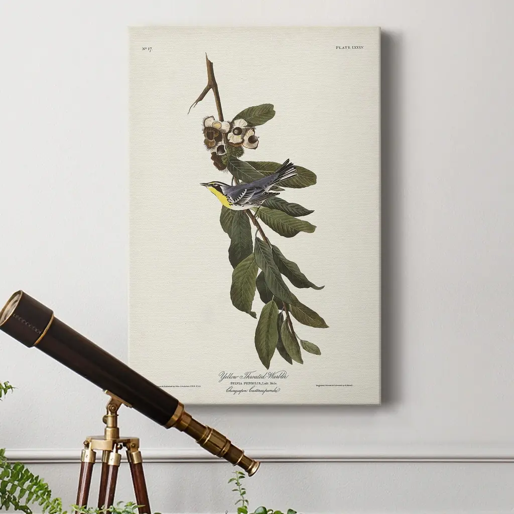 Pl. 85 Yellow-throated Warbler Premium Gallery Wrapped Canvas - Ready to Hang A premium hand stretched gallery wrapped canvas print created to last. Featuring a beveled a solid wood stretcher bar, each piece comes ready to hand 5 SIZES AVAILABLE 8''X12'' - Overall Size 16'X20'' - Overall Size 24''x32'' - Overall Size 30''x40'' - Overall Size 36''x48'' - Overall Size Each piece is made to order. Built to Last Each piece comes ready to hang Solid wood stretcher Fade and Water resistant Made domestically
