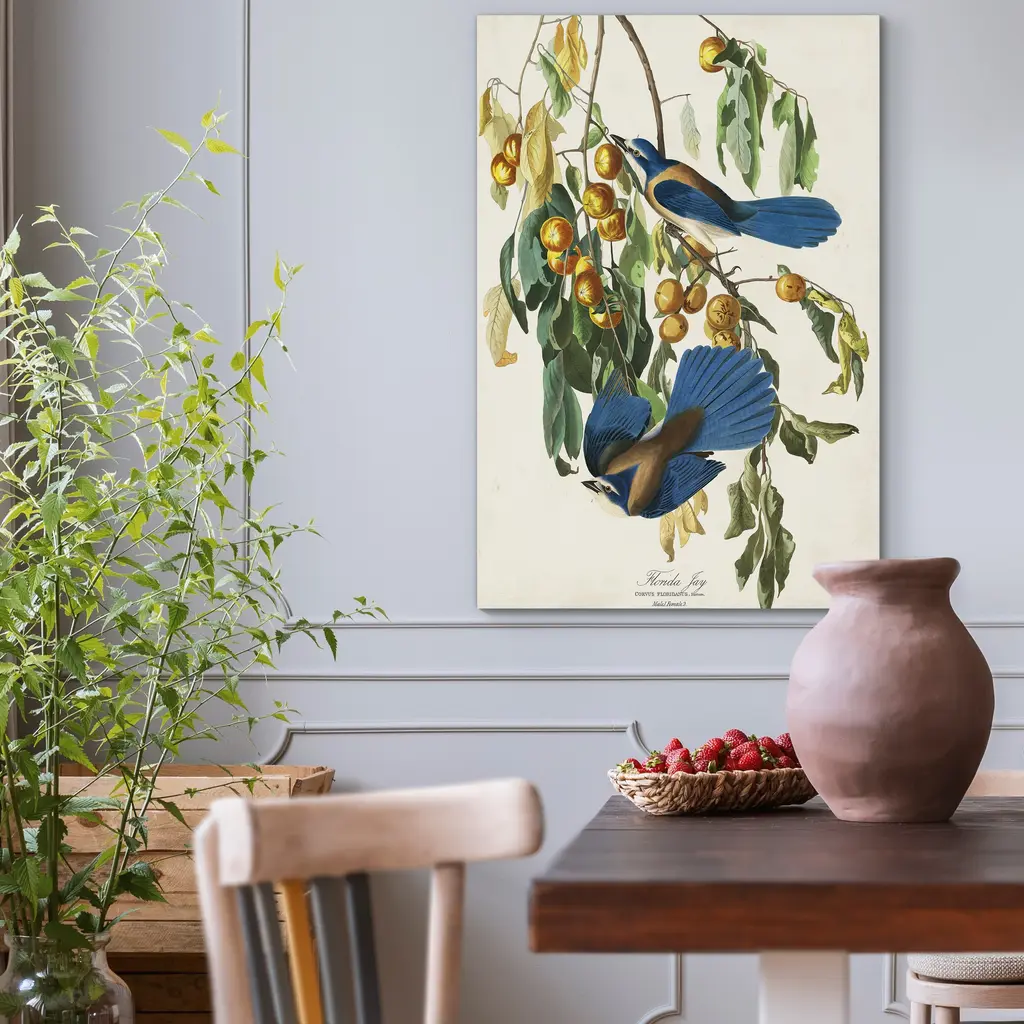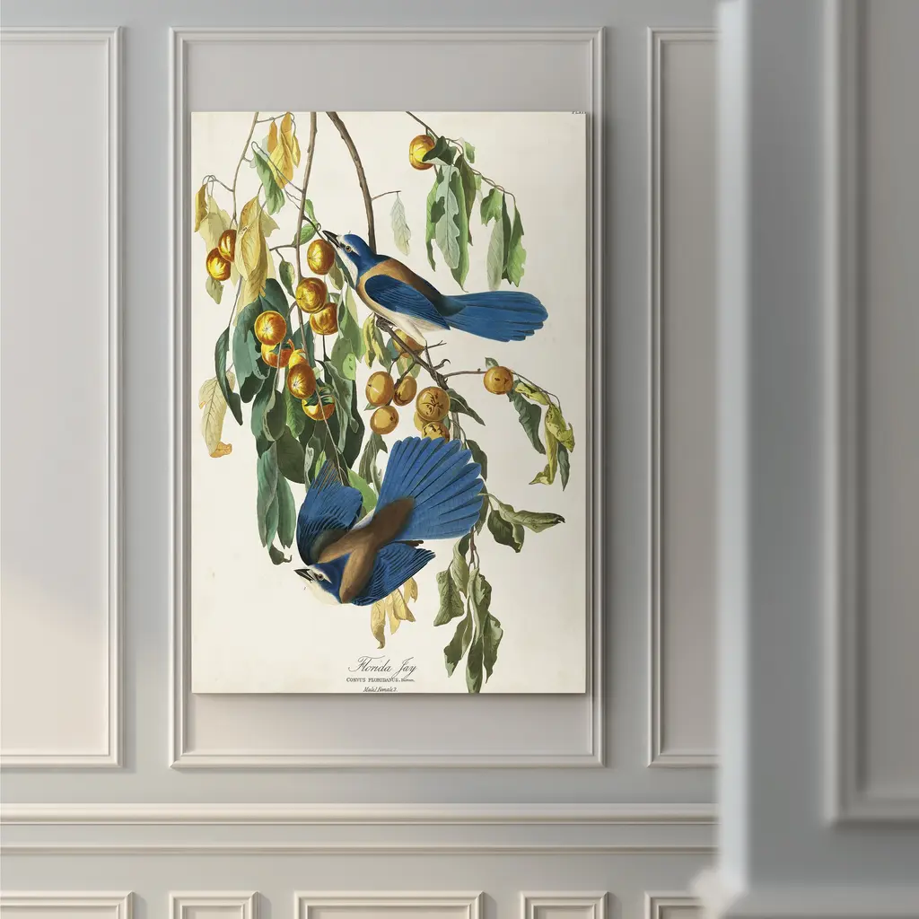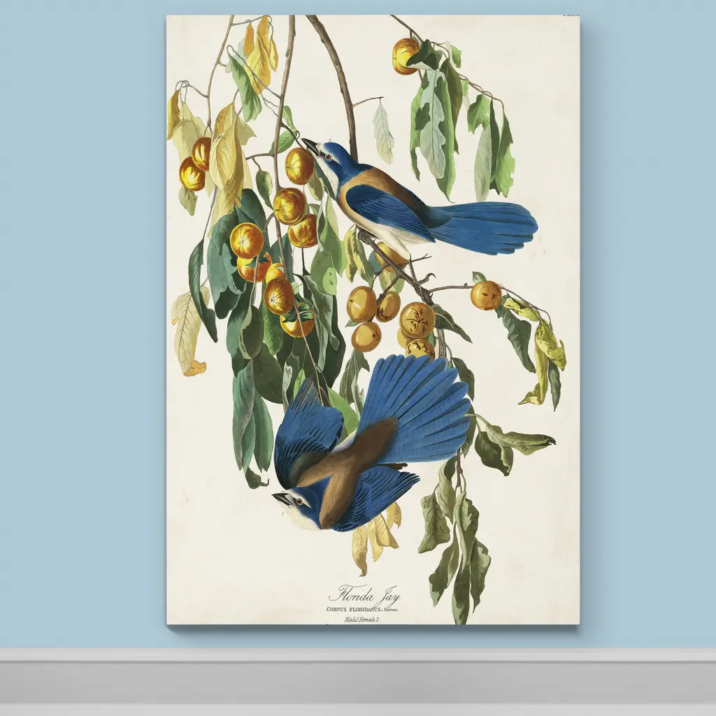 Pl 87 Florida Jay -Premium Gallery Wrapped Canvas - Ready to Hang A premium hand stretched gallery wrapped canvas print created to last. Featuring a beveled a solid wood stretcher bar, each piece comes ready to hand 5 SIZES AVAILABLE 8''X12'' - Overall Size 16''x20'' - Overall Size 18''x27'' - Overall Size 24''x36'' - Overall Size 32''x48'' - Overall Size Each piece is made to order. Built to Last Each piece comes ready to hang Solid wood stretcher Fade and Water resistant Made domestically