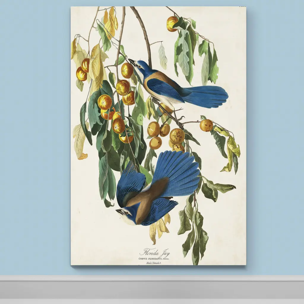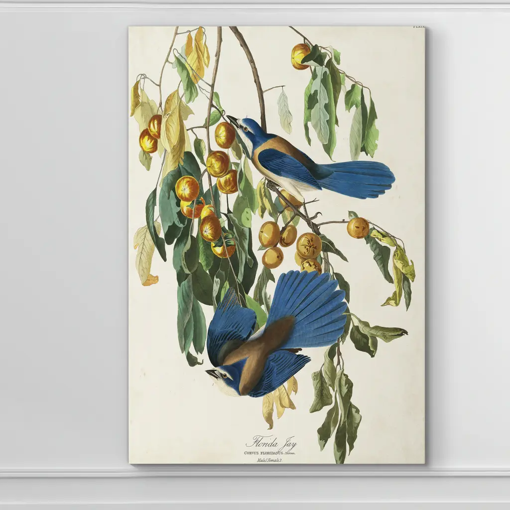 Pl 87 Florida Jay -Premium Gallery Wrapped Canvas - Ready to Hang A premium hand stretched gallery wrapped canvas print created to last. Featuring a beveled a solid wood stretcher bar, each piece comes ready to hand 5 SIZES AVAILABLE 8''X12'' - Overall Size 16''x20'' - Overall Size 18''x27'' - Overall Size 24''x36'' - Overall Size 32''x48'' - Overall Size Each piece is made to order. Built to Last Each piece comes ready to hang Solid wood stretcher Fade and Water resistant Made domestically