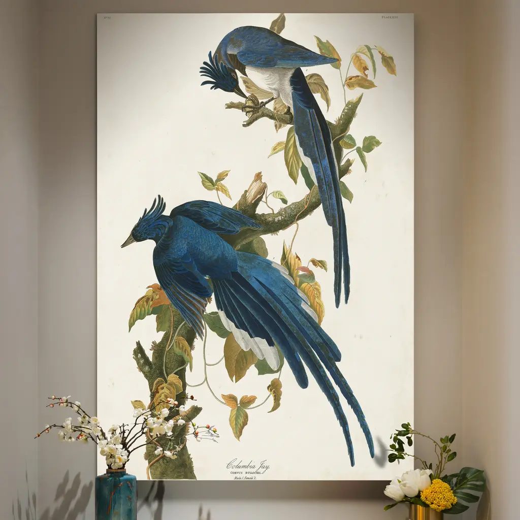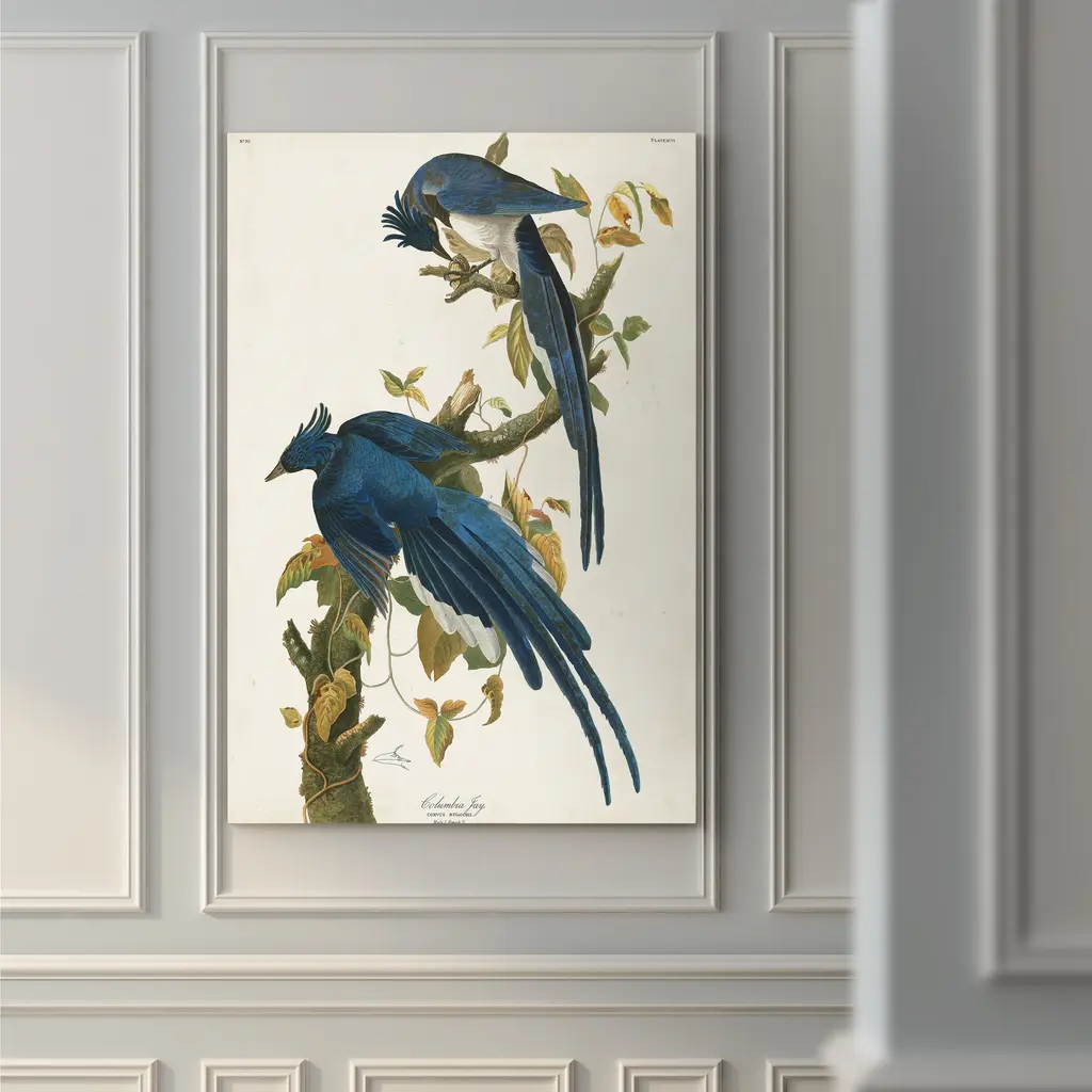 Pl 96 Columbia Jay -Premium Gallery Wrapped Canvas - Ready to Hang A premium hand stretched gallery wrapped canvas print created to last. Featuring a beveled a solid wood stretcher bar, each piece comes ready to hand 5 SIZES AVAILABLE 8''X12'' - Overall Size 16''x20'' - Overall Size 18''x27'' - Overall Size 24''x36'' - Overall Size 32''x48'' - Overall Size Each piece is made to order. Built to Last Each piece comes ready to hang Solid wood stretcher Fade and Water resistant Made domestically