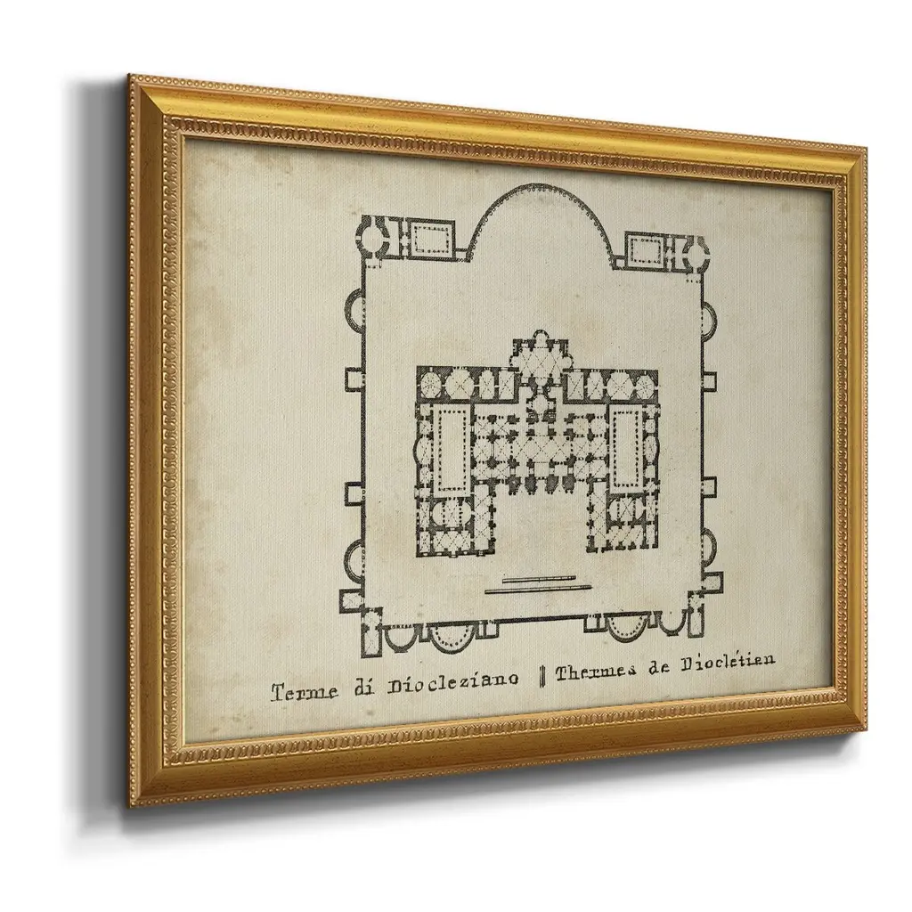 Plan For The Baths Of Diocletian Premium Framed Canvas- Ready To Hang - 24x36 - Gold