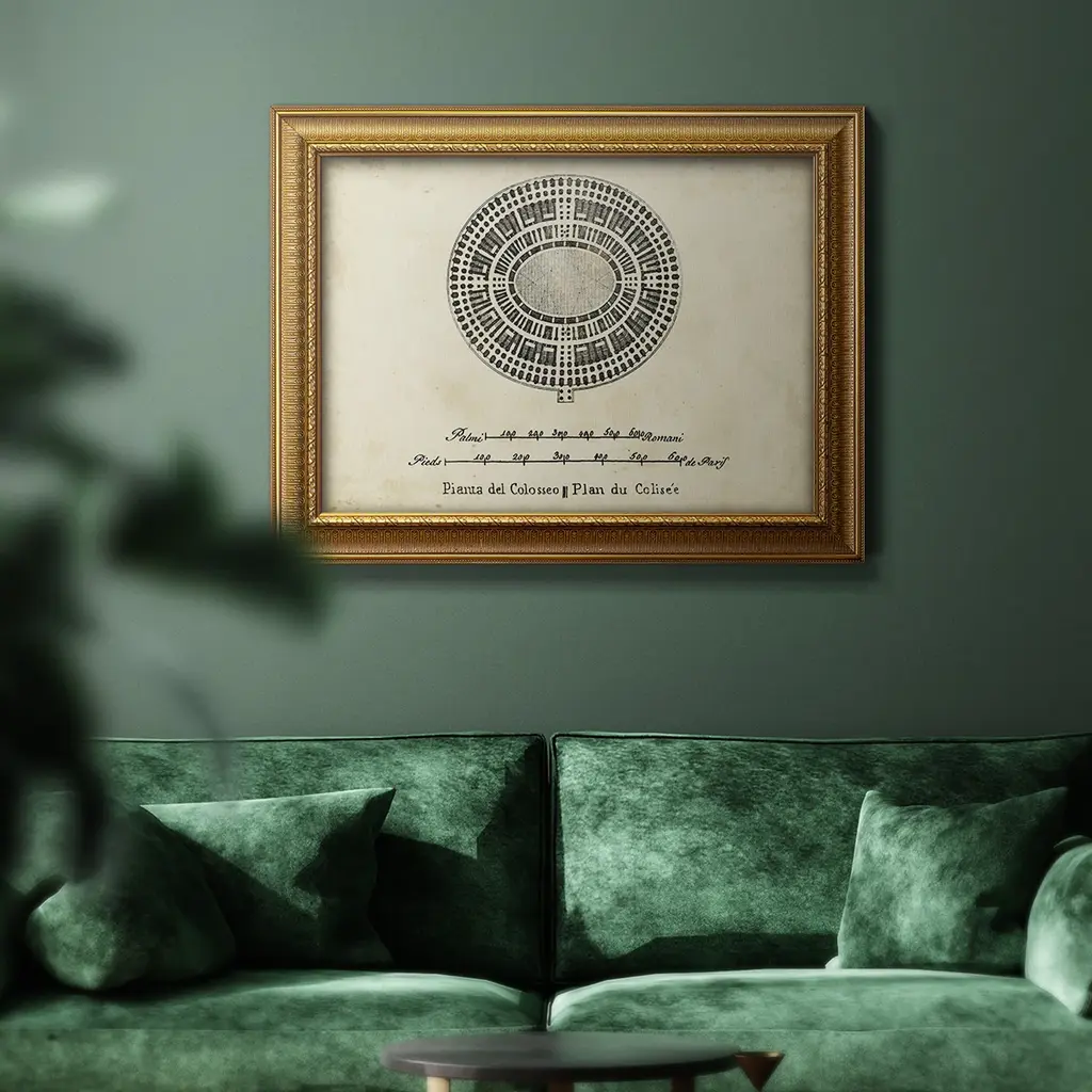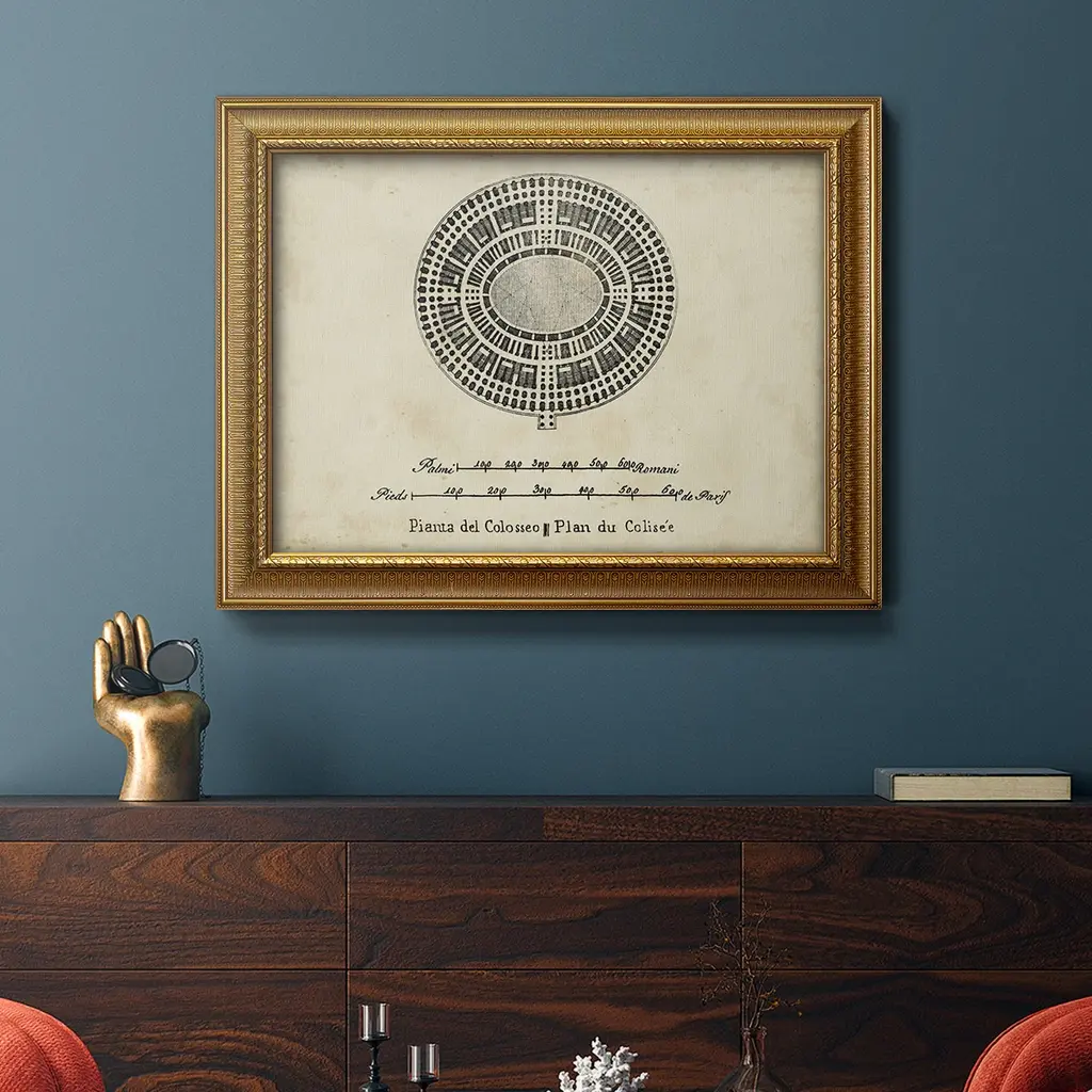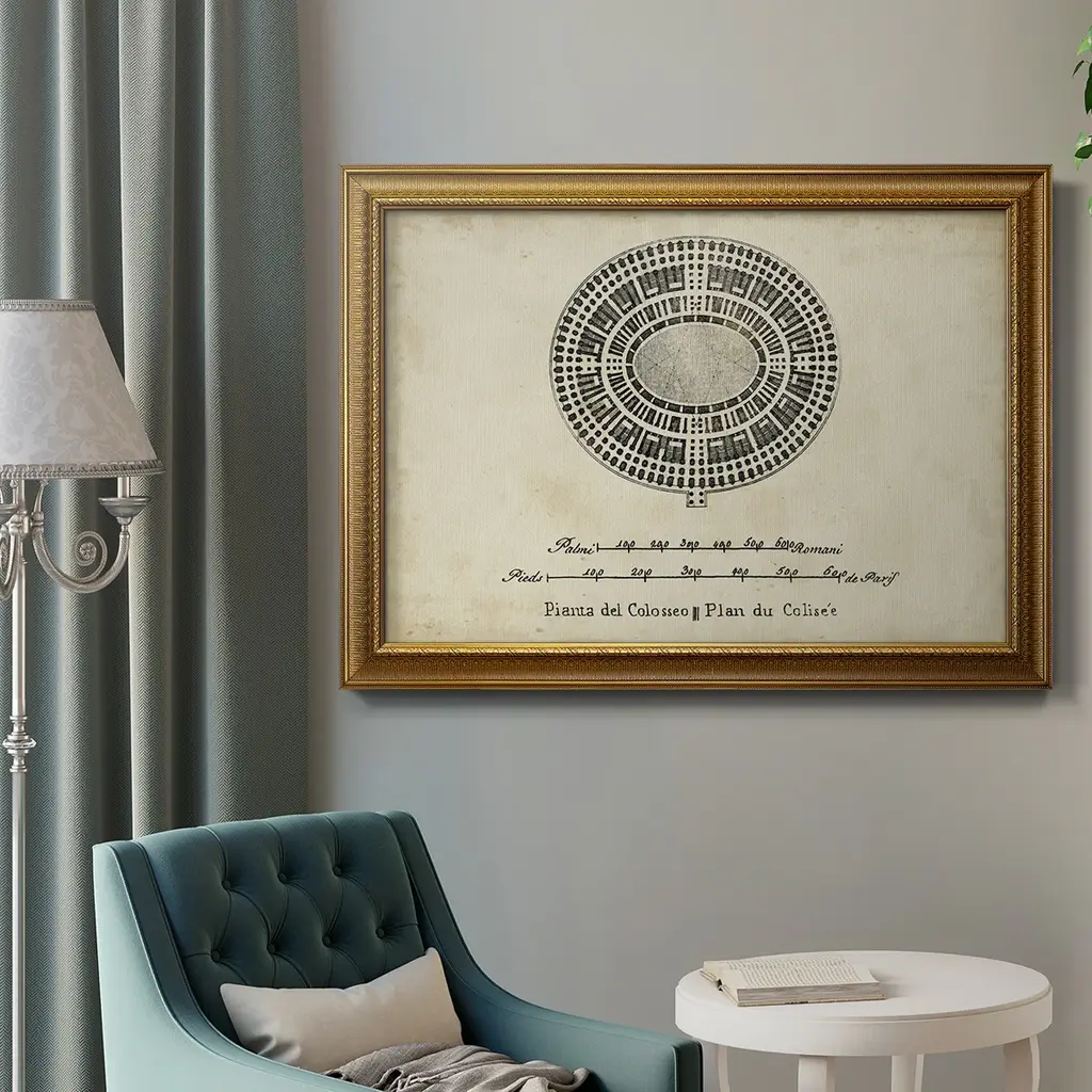 Plan For The Colosseum Premium Framed Canvas- Ready To Hang - 24x36 - Gold