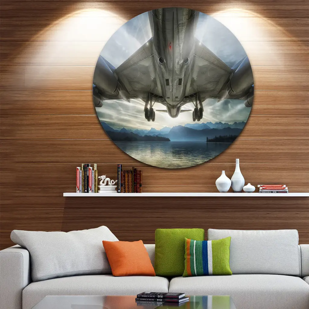 Bring Contemporary Abstraction to your home with this large Circle Metal wall art. This Plane Over Beach and Sea Metal Artwork makes it the focal point of any room or office. - White Gloss Coating ensures colors are extra vibrant with light reflection.- Aluminum grade Sheet Metal with 1 inch mounting frame on the back giving the illusion that the artwork is floating on the wall..- Mounting Brackets are included along with instructions.- High Quality Digital images are created directly into a glossy aluminum panel producing a stunning and captivating print into the glossy finish of the metal.- Water, Fire and Scratch resistant HD Aluminum panels.- Looks better than any photo paper and guaranteed to last at least 20 years- Easy to clean with a microfiber cloth. Colors are far superior to regular Canvas Art. - Easy to Hang
