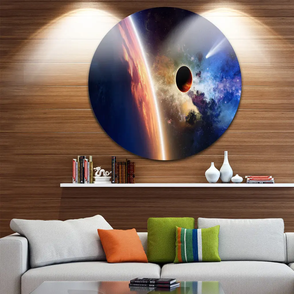 Planet And Comet In Space, Spacescape Disc Metal Wall Art, 38"