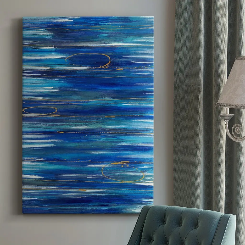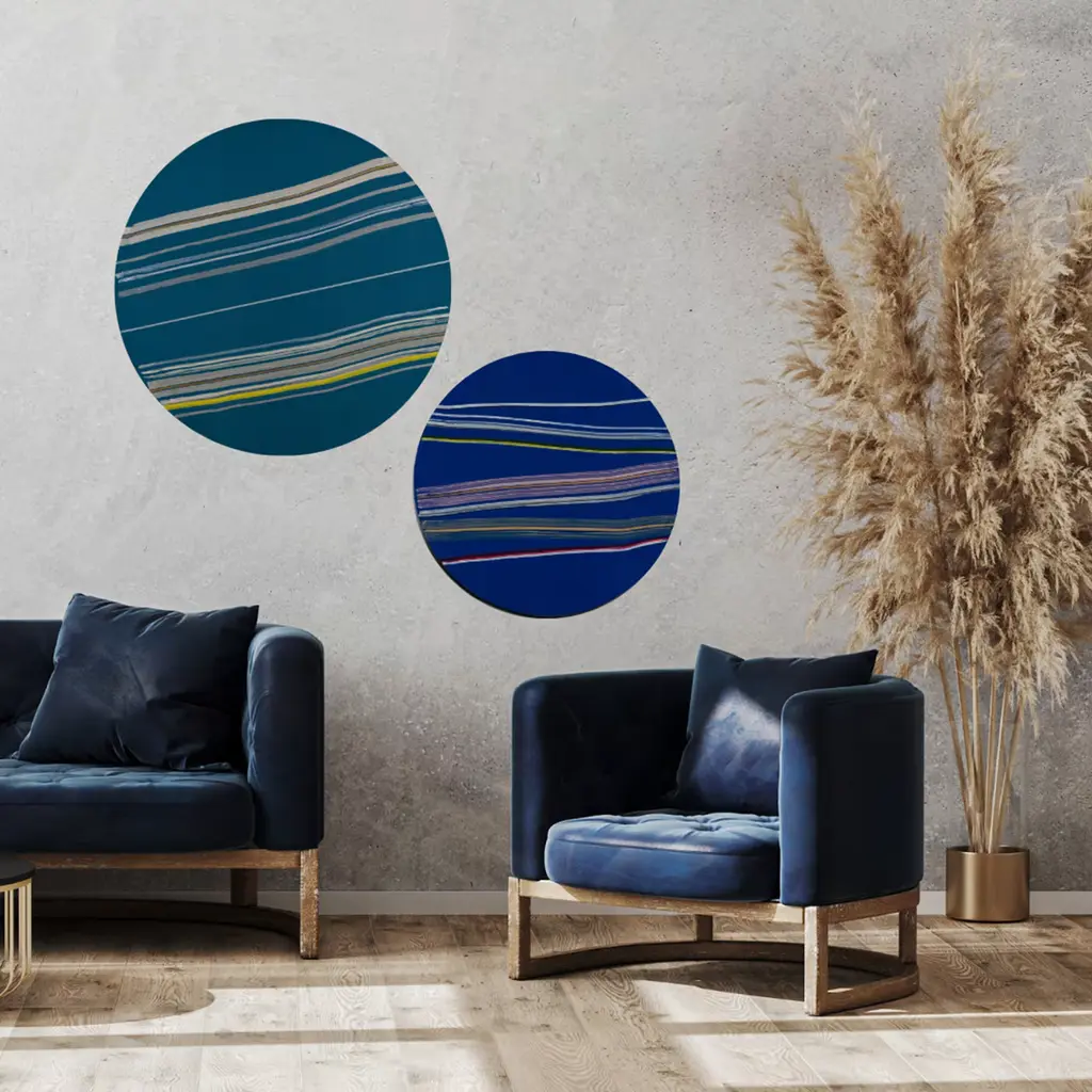The Planet painting encapsulates the essence of organic expression through its abstract representation. This artwork transcends conventional geometric lines, instead embracing the fluidity of sight and the horizon. It showcases a sophisticated interplay of movement and dynamic lines, embodying a purifying gesture that transforms informal strokes into a generative form. The piece invites viewers to explore the boundaries of space and time through its expansive visual narrative, enriching any modern art collection. This striking blue painting serves as a bold statement, enhancing the aesthetic of contemporary interiors. Its unique interpretation fosters an atmosphere of openness, making it a perfect focal point. One-of-a-kind piece.