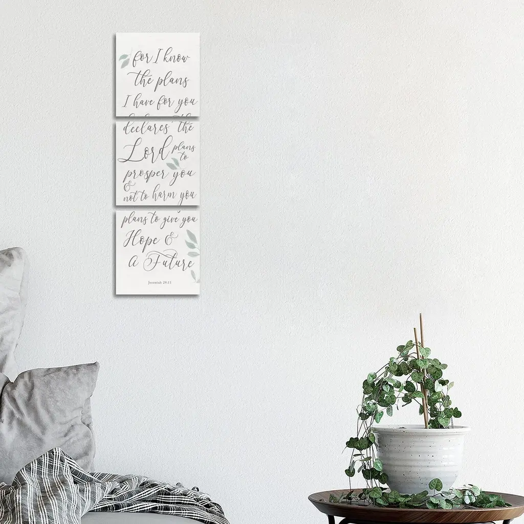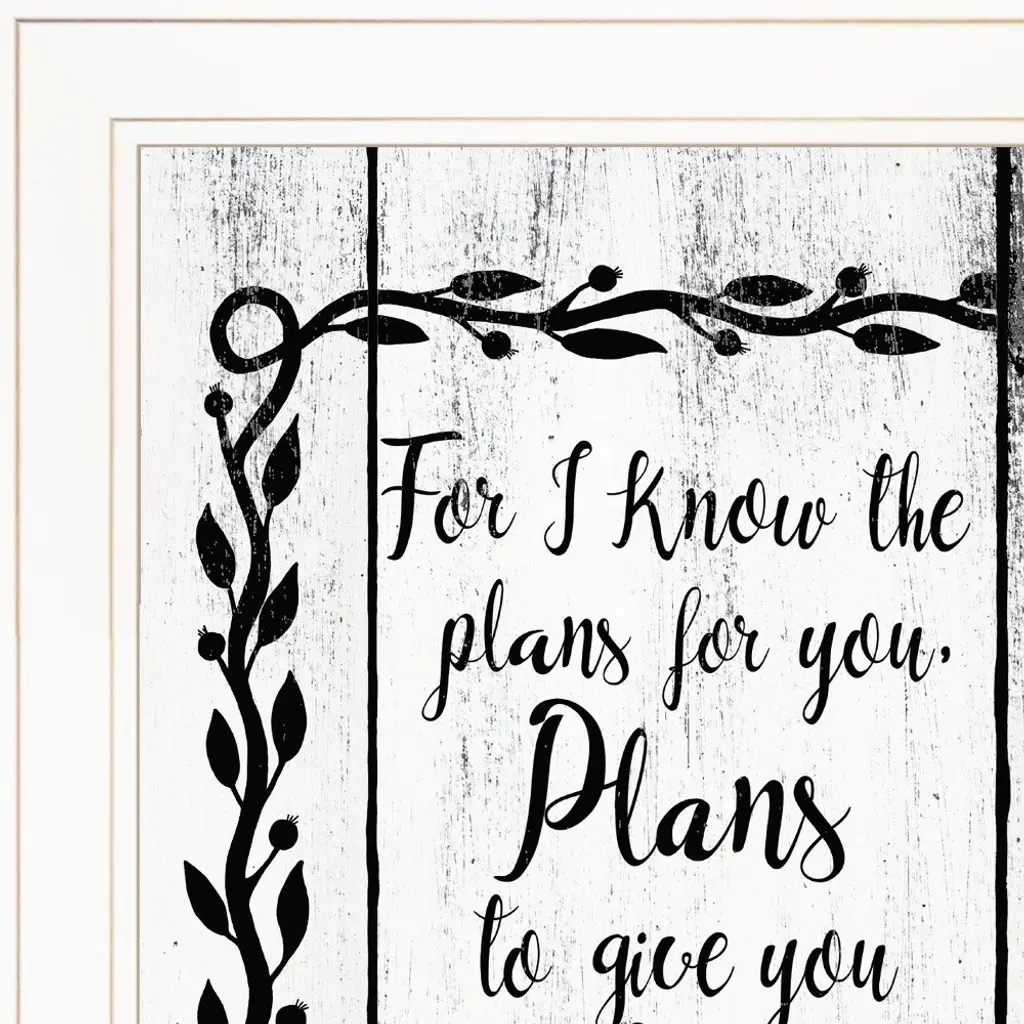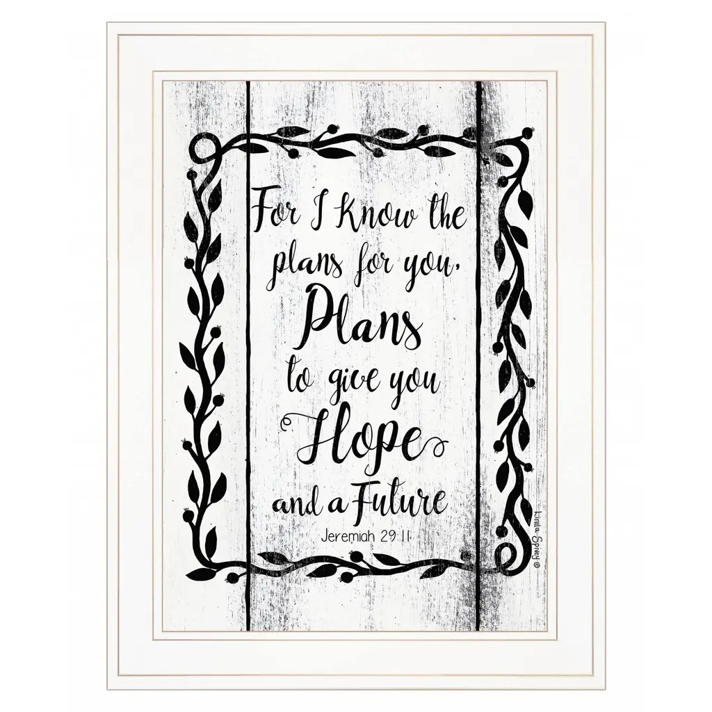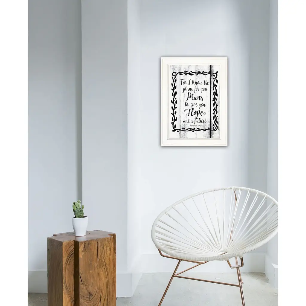 The plans to give you hope 1 white framed print wall art is the perfect decorative accessory for your home. This print is a visual artistic expression that allows you to decorate your space in style. Reproduced for you on wood, this hanging decorative accent will be a trendy and fashionable way to dress your walls in a rustic and modern farmhouse vibe. Hang on your wall to add some up to date fashion and decoration. Instantly liven up your space with this art that brings color and dimension to your walls. 19" H x 15" W x 1" D