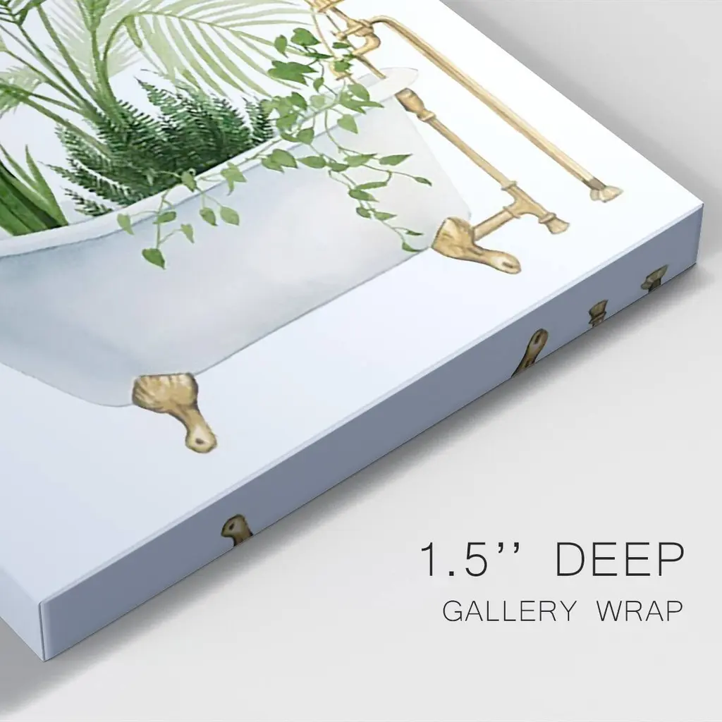 Plant Bath I Premium Gallery Wrapped Canvas - Ready to Hang A premium hand stretched gallery wrapped canvas print created to last. Featuring a beveled a solid wood stretcher bar, each piece comes ready to hand 6 SIZES AVAILABLE 8''X12'' - Overall Size 12''X18'' - Overall Size 18''X27'' - Overall Size 24''x36'' - Overall Size 32''x48'' - Overall Size 40''x60'' - Overall Size Each piece is made to order. Built to Last Each piece comes ready to hang Solid wood stretcher Fade and Water resistant Made domestically