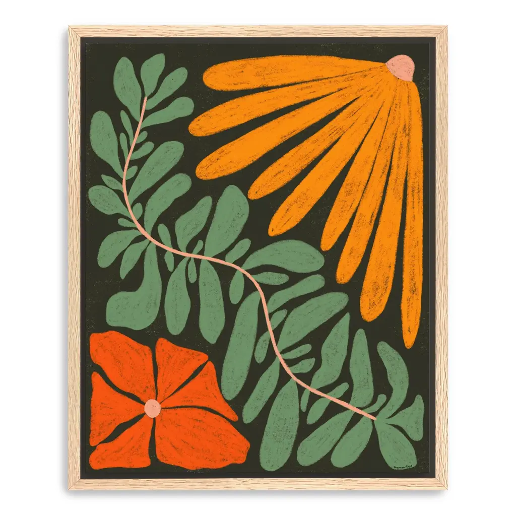 Introduce a breath of fresh air to your decor with this stunning abstract botanical canvas art print. Featuring an imaginative representation of botanical elements, this artwork harmoniously blends colors and shapes to create a captivating focal point.Available in black frame, dark walnut frame and oak frames, or as a frameless canvas. Our Gallery Wrap Canvas Prints are proudly assembled with high quality materials in California, USA. Each piece is printed on a thick, archival grade canvas using Giclee technology. It is then hand-stretched by our experienced artisans over solid pine bars, which will not warp over time. The final product is a piece personally crafted for you to confidently display on your wall. Care and Assembly: Ensure that the location of your piece has little to no exposure to heat, sunlight, and moisture. Wipe clean, only if needed. Each piece includes a sawtooth hanger to hang on your wall vertically.