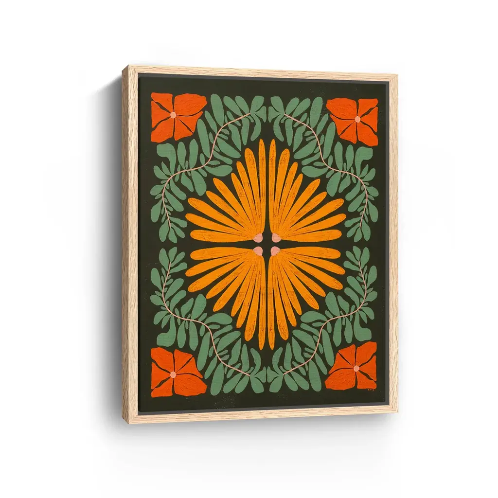 Introduce a breath of fresh air to your decor with this stunning abstract botanical canvas art print. Featuring an imaginative representation of botanical elements, this artwork harmoniously blends colors and shapes to create a captivating focal point.Available in black frame, dark walnut frame and oak frames, or as a frameless canvas. Our Gallery Wrap Canvas Prints are proudly assembled with high quality materials in California, USA. Each piece is printed on a thick, archival grade canvas using Giclee technology. It is then hand-stretched by our experienced artisans over solid pine bars, which will not warp over time. The final product is a piece personally crafted for you to confidently display on your wall. Care and Assembly: Ensure that the location of your piece has little to no exposure to heat, sunlight, and moisture. Wipe clean, only if needed. Each piece includes a sawtooth hanger to hang on your wall vertically.