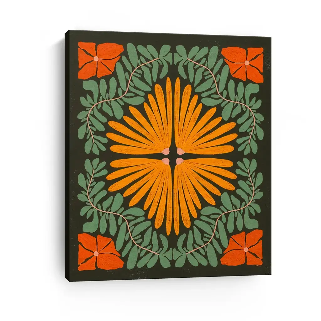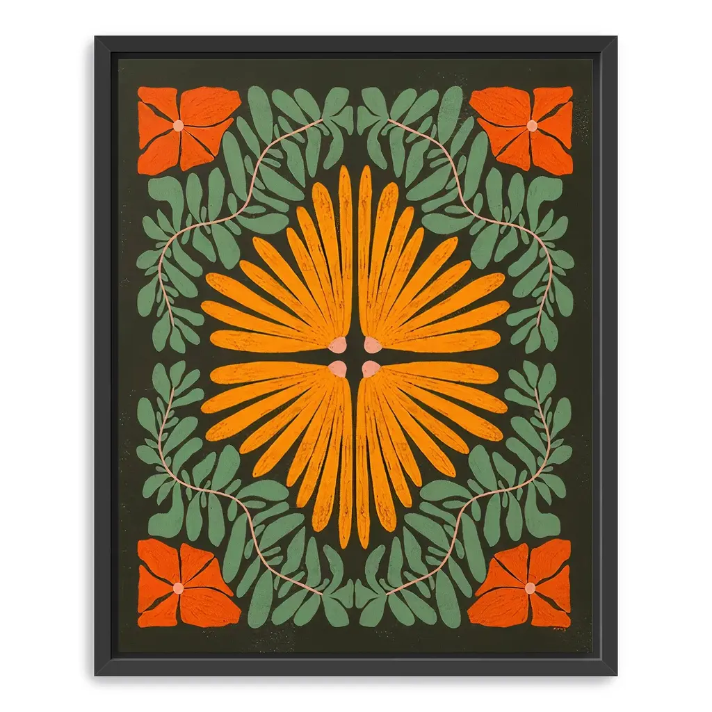 Introduce a breath of fresh air to your decor with this stunning abstract botanical canvas art print. Featuring an imaginative representation of botanical elements, this artwork harmoniously blends colors and shapes to create a captivating focal point.Available in black frame, dark walnut frame and oak frames, or as a frameless canvas. Our Gallery Wrap Canvas Prints are proudly assembled with high quality materials in California, USA. Each piece is printed on a thick, archival grade canvas using Giclee technology. It is then hand-stretched by our experienced artisans over solid pine bars, which will not warp over time. The final product is a piece personally crafted for you to confidently display on your wall. Care and Assembly: Ensure that the location of your piece has little to no exposure to heat, sunlight, and moisture. Wipe clean, only if needed. Each piece includes a sawtooth hanger to hang on your wall vertically.