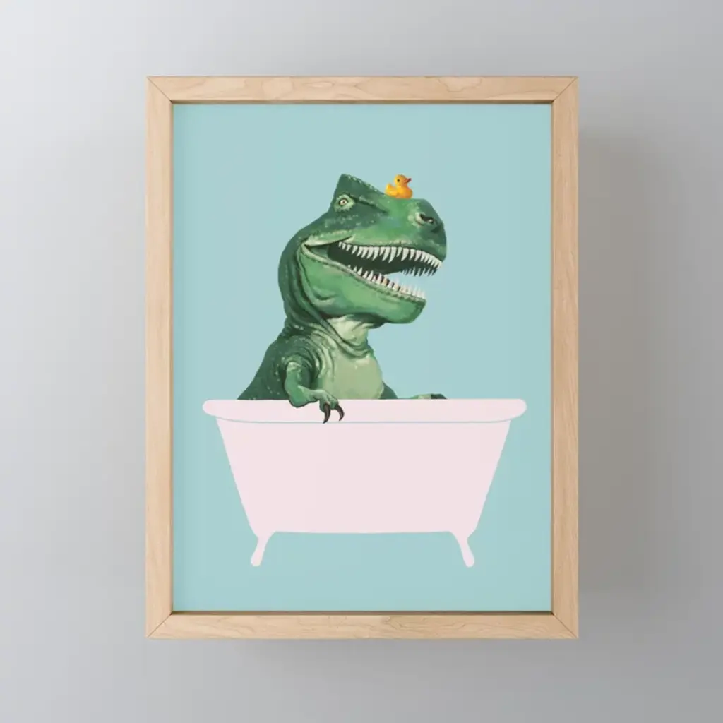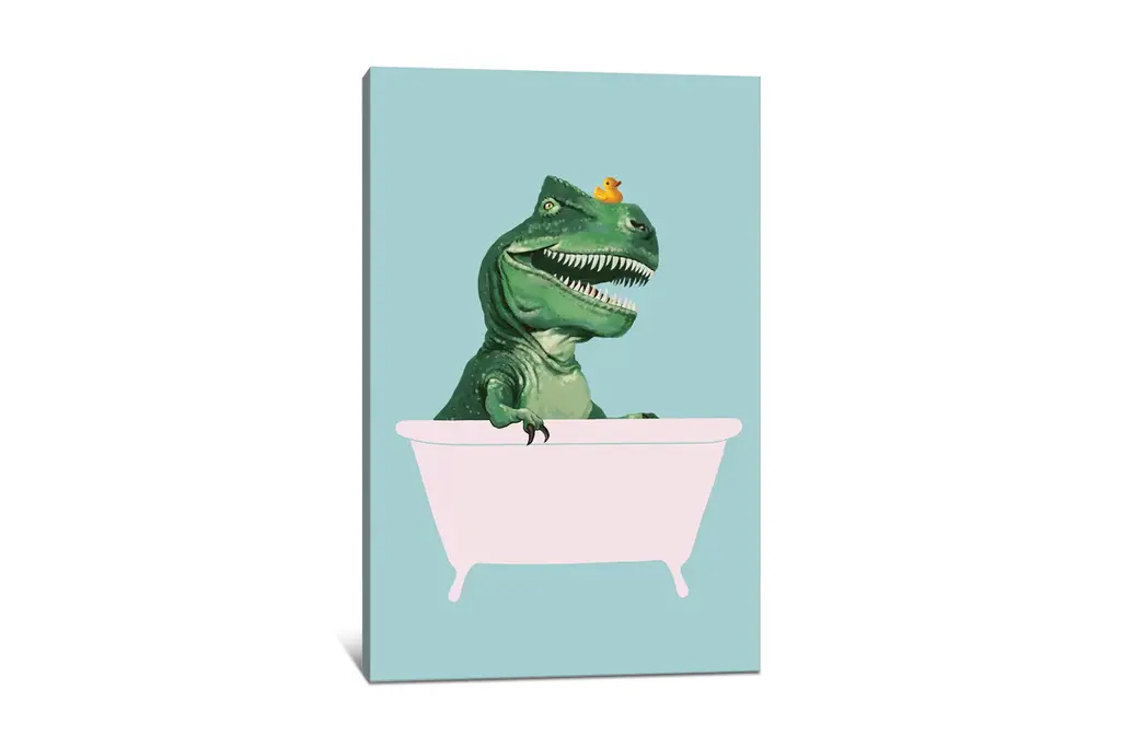 Playful T-Rex In Bathtub In Green Art Print