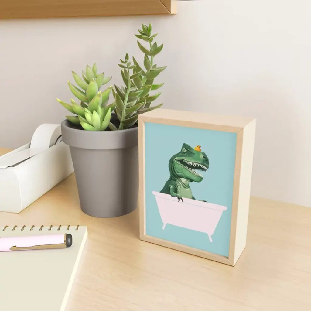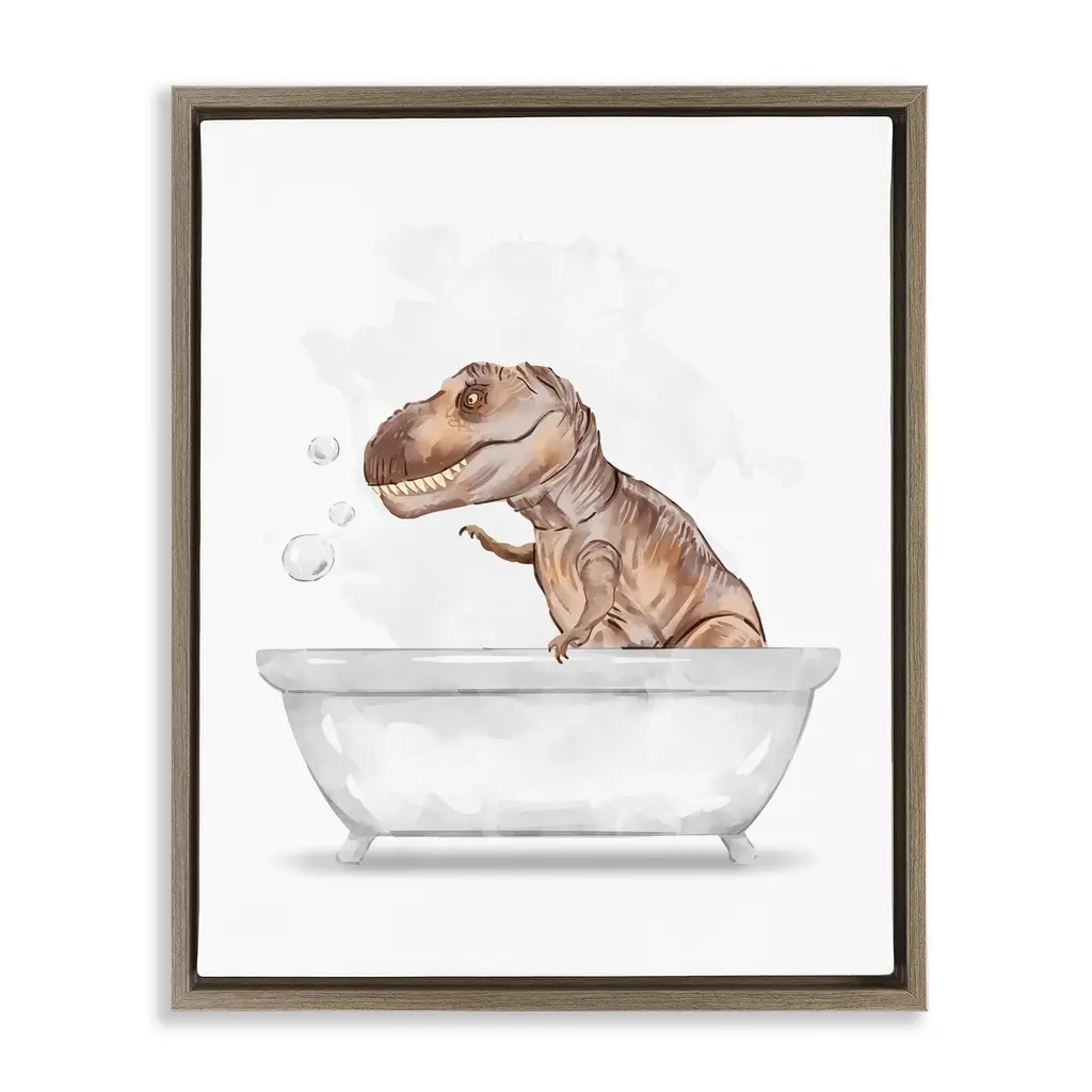 Playful T-Rex In Bathtub In Green Mini Art Print