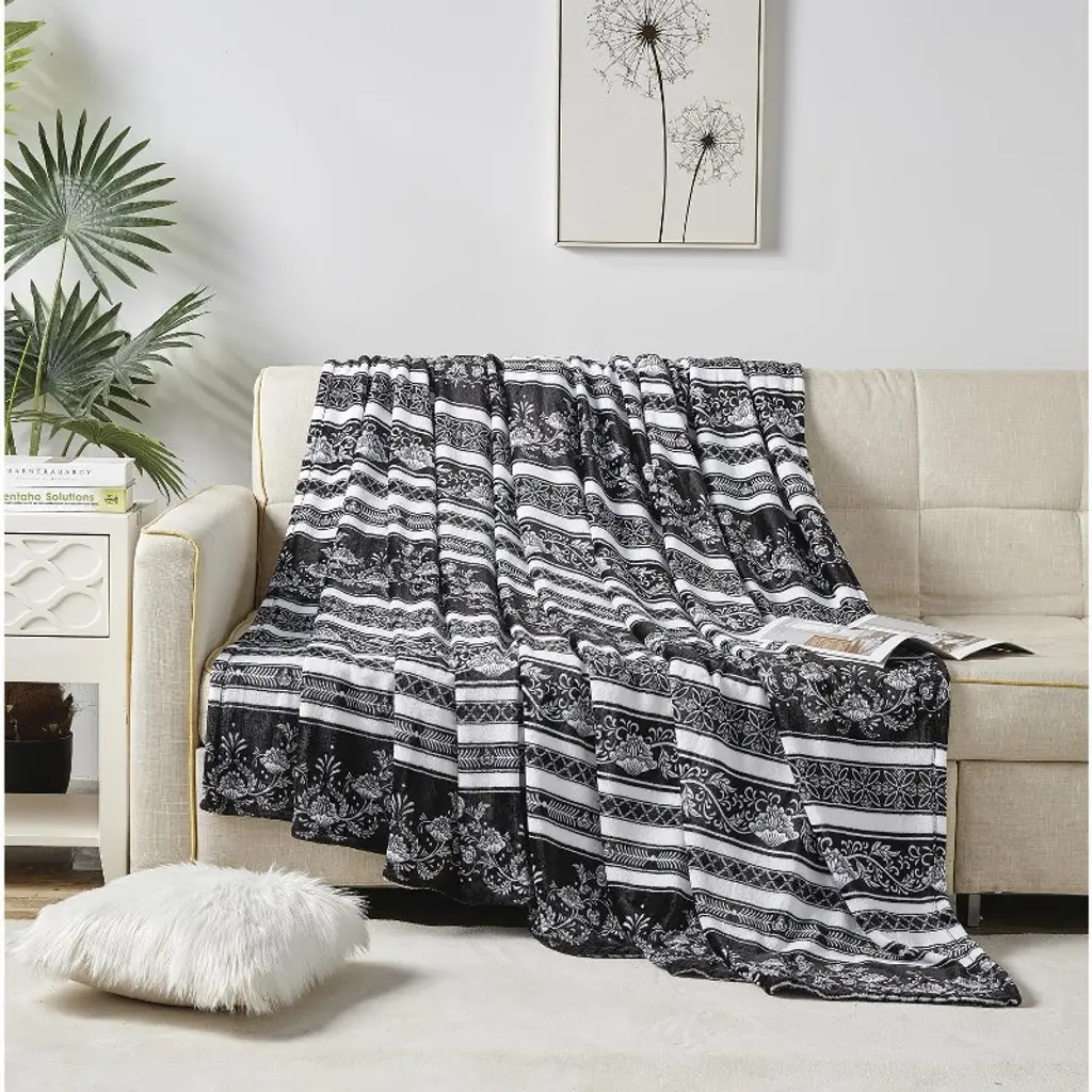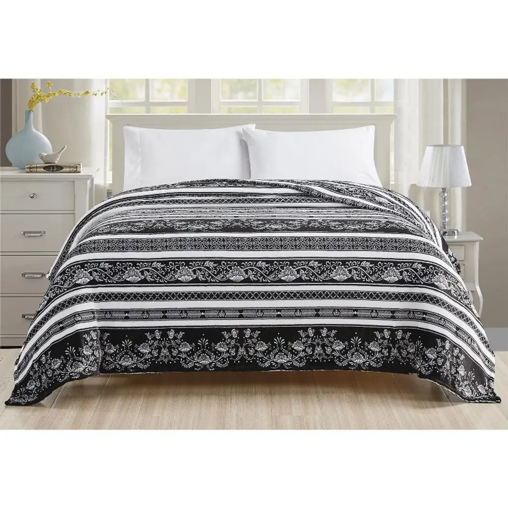 Plazatex Odelia Printed Luxurious Ultra Soft Lightweight Bed Blanket 90" X 90" Black & White