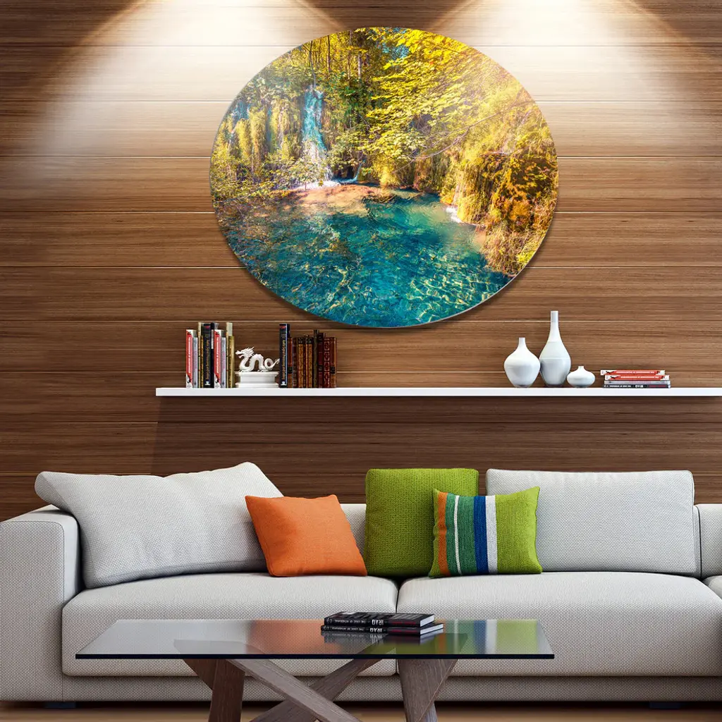 Plitvice Lakes National Park, Landscape Art Disc Metal Artwork, 36"