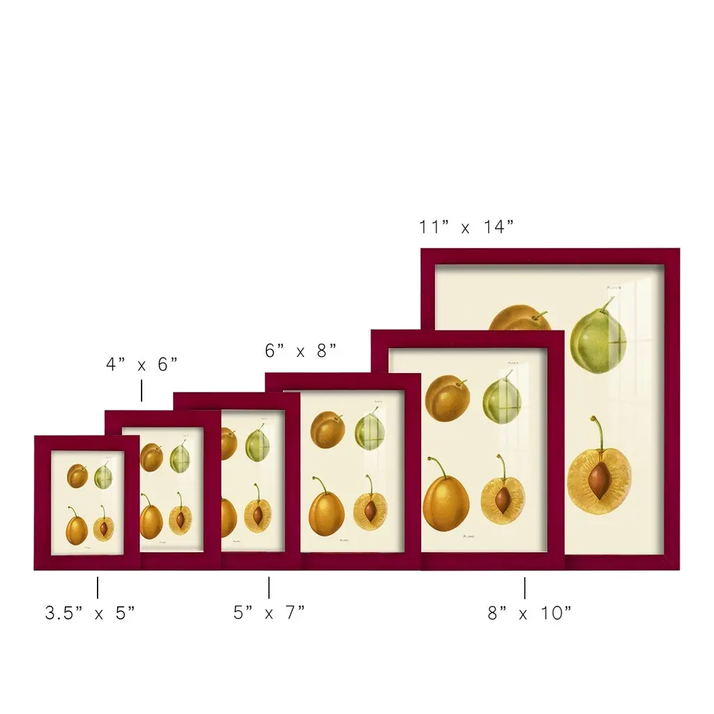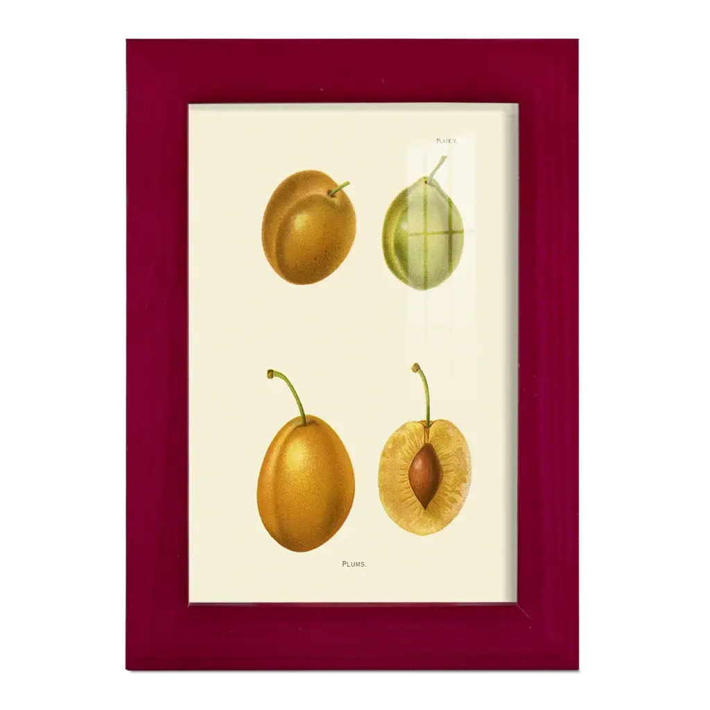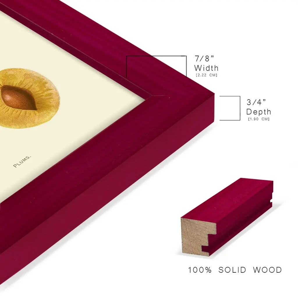 Plums I -EZ SWITCH Framed Print w/glass-Cherry Red A delightful, framed print. Featuring a solid wood frame with real wood glass. This premium print is giclee quality. In addition, every frame features a removable back and table top stand. This allows you to change your art in the future or to just stand the art on a table for a new look. We are sure you'll enjoy our new series of EZ SWITCH Framed Art. Solid Wood Frame Real Glass Removable / Replaceable Art Built in Tabletop Stand Sizes range from 4x6 up to 12x15 - buy just one or pair them up as sets as you see fit.