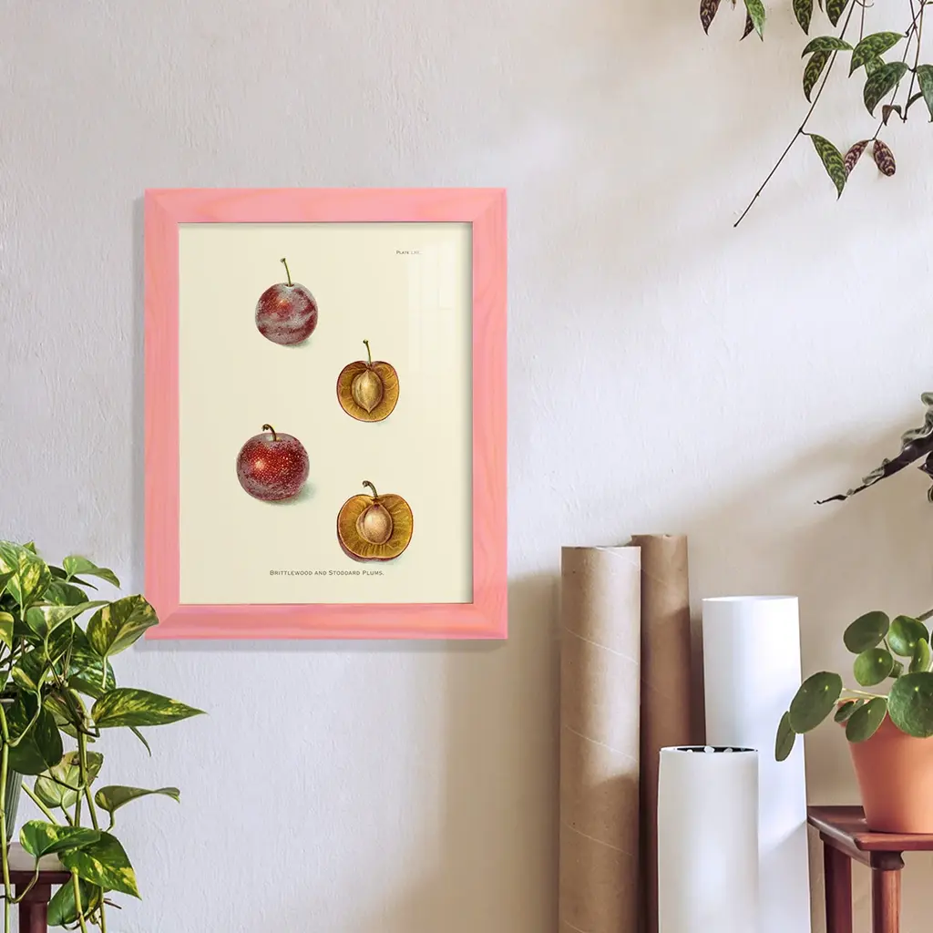 Plums II -EZ SWITCH Framed Print w/glass-Cherry Red A delightful, framed print. Featuring a solid wood frame with real wood glass. This premium print is giclee quality. In addition, every frame features a removable back and table top stand. This allows you to change your art in the future or to just stand the art on a table for a new look. We are sure you'll enjoy our new series of EZ SWITCH Framed Art. Solid Wood Frame Real Glass Removable / Replaceable Art Built in Tabletop Stand Sizes range from 4x6 up to 12x15 - buy just one or pair them up as sets as you see fit.