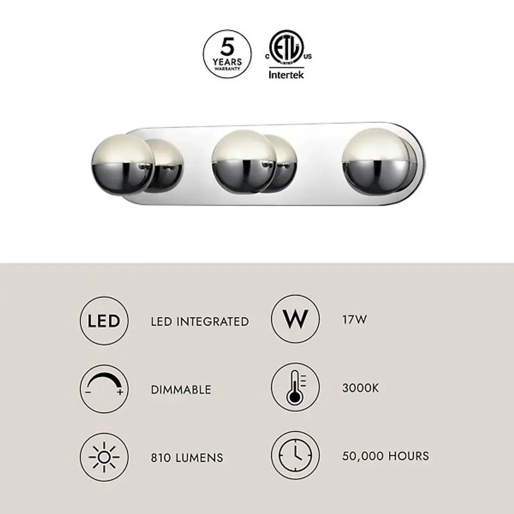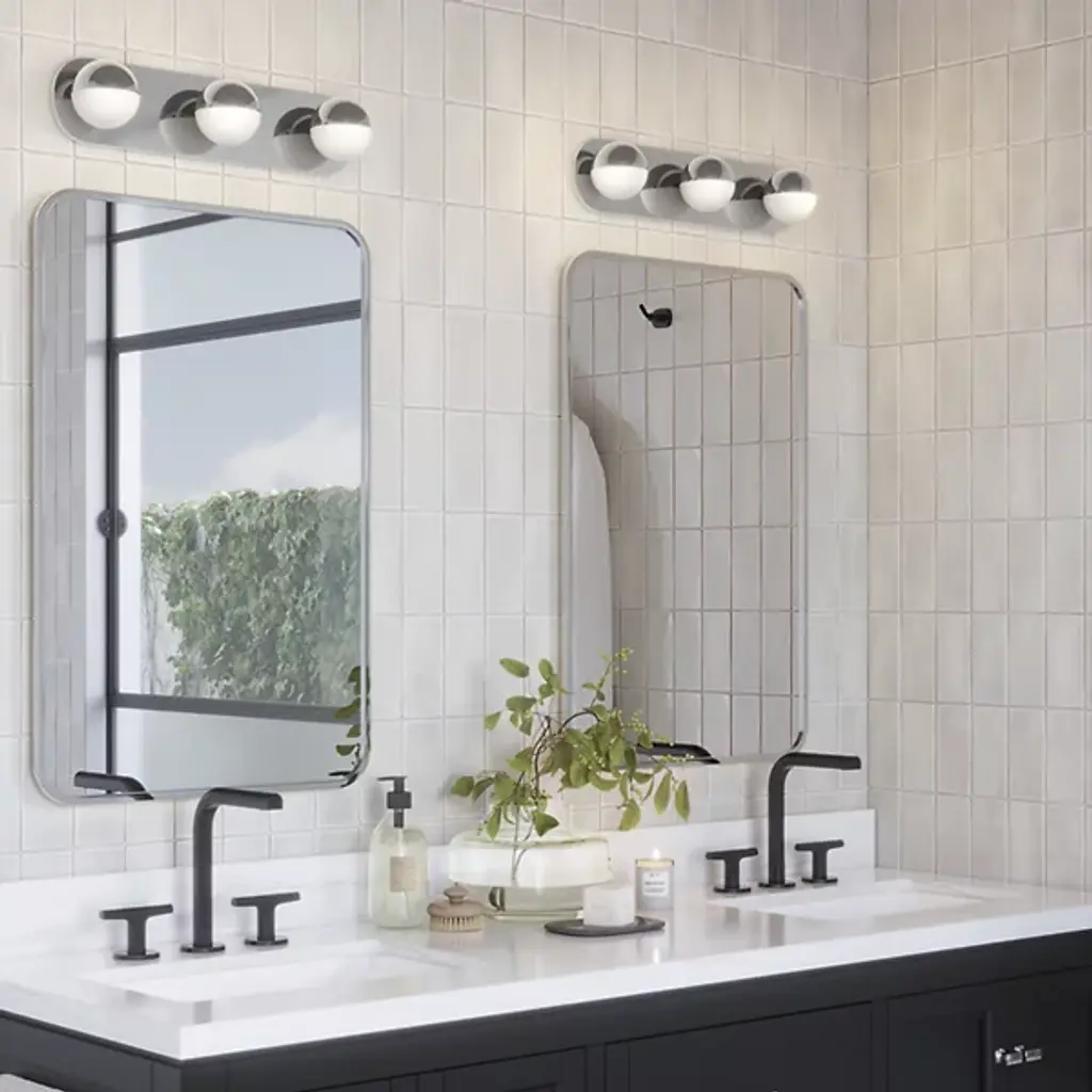 A simple and versatile design. The Pluto LED Vanity Light from Kuzco Lighting has a straightforward look that will fit in with your modern bathroom, giving you the perfect light to get ready for the day or a night out by. The metal backplate is shaped like an oval, and it holds a row of globes on it. One half of each sphere is a metal fitting to house the light, and the other half is a diffuser to eliminate dark spots and glares to make sure it emits high-quality diffused light.