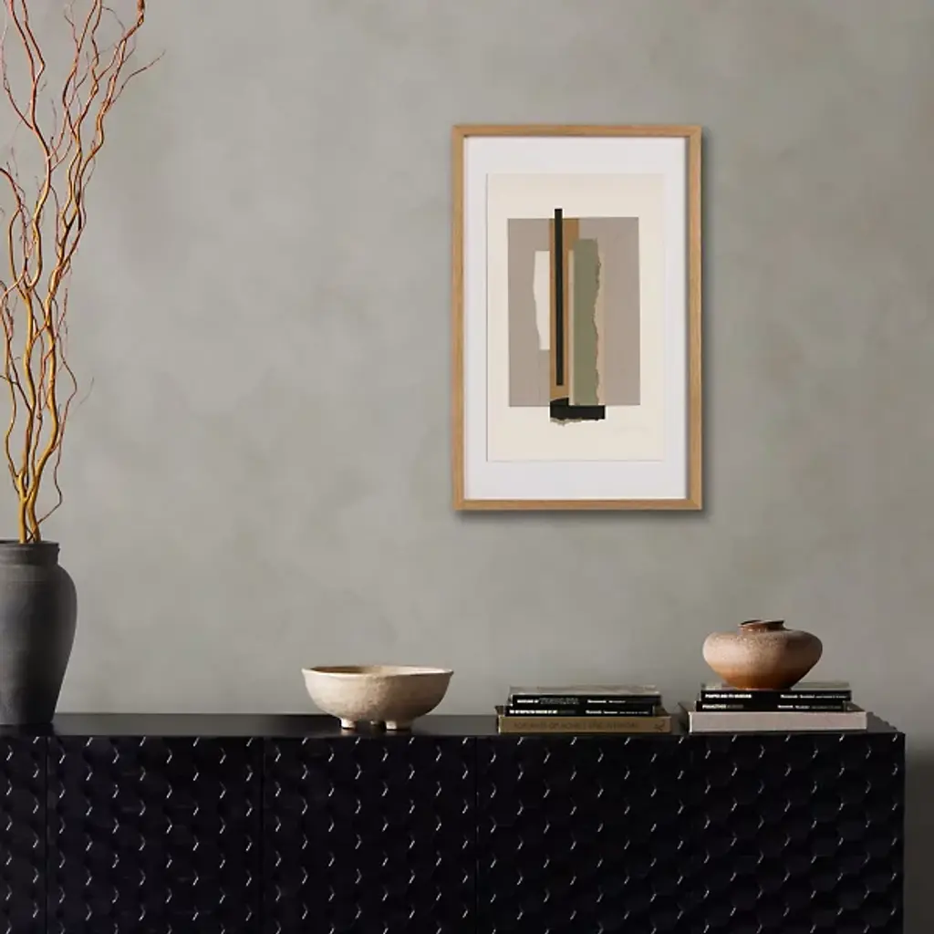 Indulge in the captivating ambiance of Poetic Architectures No 7 Wall Art from Four Hands, an extraordinary development from Barcelona artist Valeria Sidanez. Meticulously crafted from American Maple, Textured Fine Art Paper, and linen backing, this piece is handmade in Austin, Texas. Sidanez's artistic expertise is evident in the natural tears of each surface layer, contrasting with straight lines and colorful strips, creating a dynamic texture with an asymmetrical finish. The amalgamation of collage, paint, and drawing results in layered linear forms, offering a harmonious blend of contemporary and artisanal modern design.