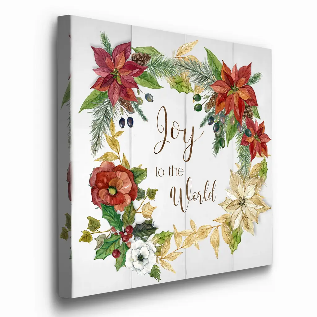 Poinsettia Joy-Premium Gallery Wrapped Canvas - Ready to Hang A premium hand stretched gallery wrapped canvas print created to last. Featuring a beveled a solid wood stretcher bar, each piece comes ready to hand 5 SIZES AVAILABLE 10''X10'' - Overall Size 16''x16'' - Overall Size 24''x24'' - Overall Size 32''x32'' - Overall Size 40''x40'' - Overall Size Each piece is made to order. Built to Last Each piece comes ready to hang Solid wood stretcher Fade and Water resistant Made domestically