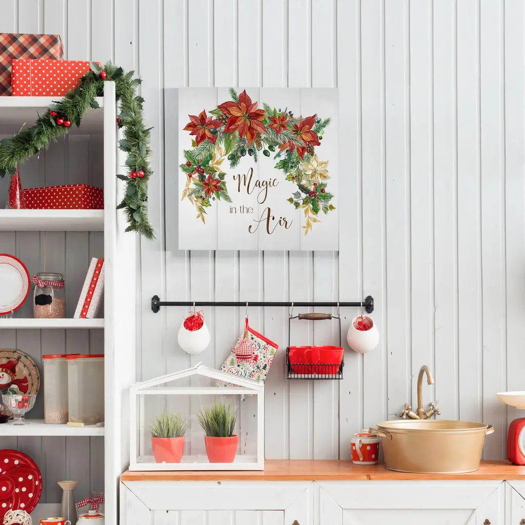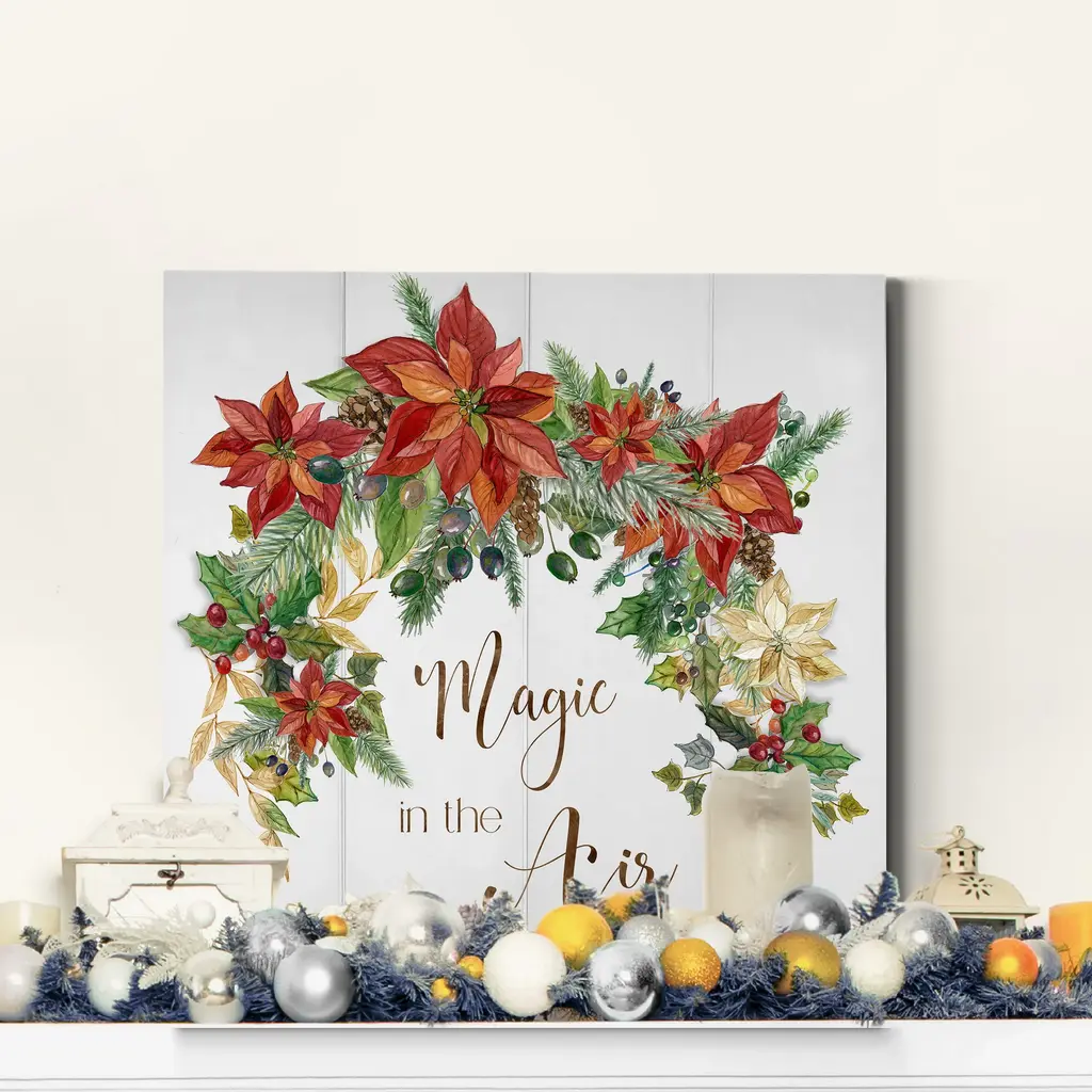 Poinsettia Magic-Premium Gallery Wrapped Canvas - Ready to Hang A premium hand stretched gallery wrapped canvas print created to last. Featuring a beveled a solid wood stretcher bar, each piece comes ready to hand 5 SIZES AVAILABLE 10''X10'' - Overall Size 16''x16'' - Overall Size 24''x24'' - Overall Size 32''x32'' - Overall Size 40''x40'' - Overall Size Each piece is made to order. Built to Last Each piece comes ready to hang Solid wood stretcher Fade and Water resistant Made domestically