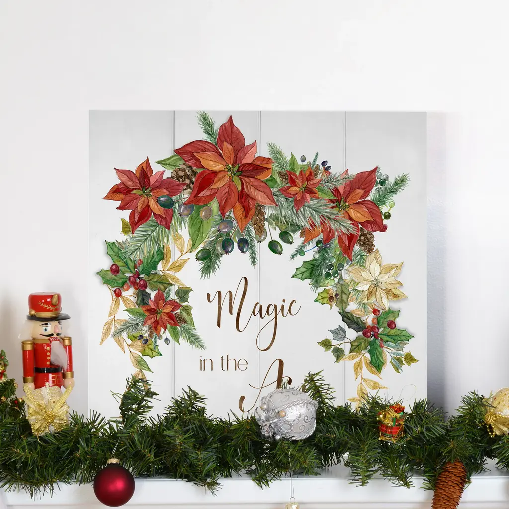 Poinsettia Magic-Premium Gallery Wrapped Canvas - Ready to Hang A premium hand stretched gallery wrapped canvas print created to last. Featuring a beveled a solid wood stretcher bar, each piece comes ready to hand 5 SIZES AVAILABLE 10''X10'' - Overall Size 16''x16'' - Overall Size 24''x24'' - Overall Size 32''x32'' - Overall Size 40''x40'' - Overall Size Each piece is made to order. Built to Last Each piece comes ready to hang Solid wood stretcher Fade and Water resistant Made domestically