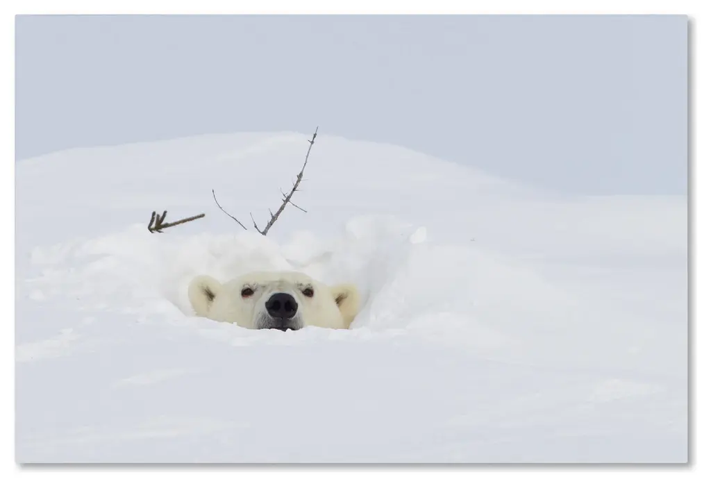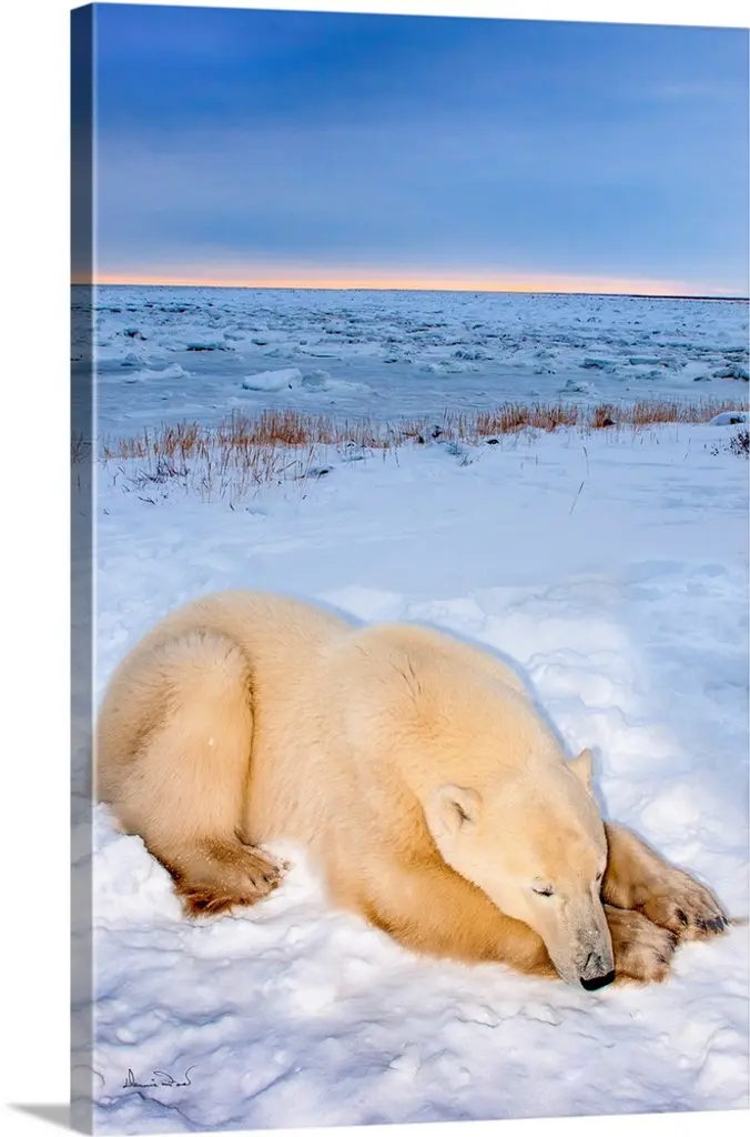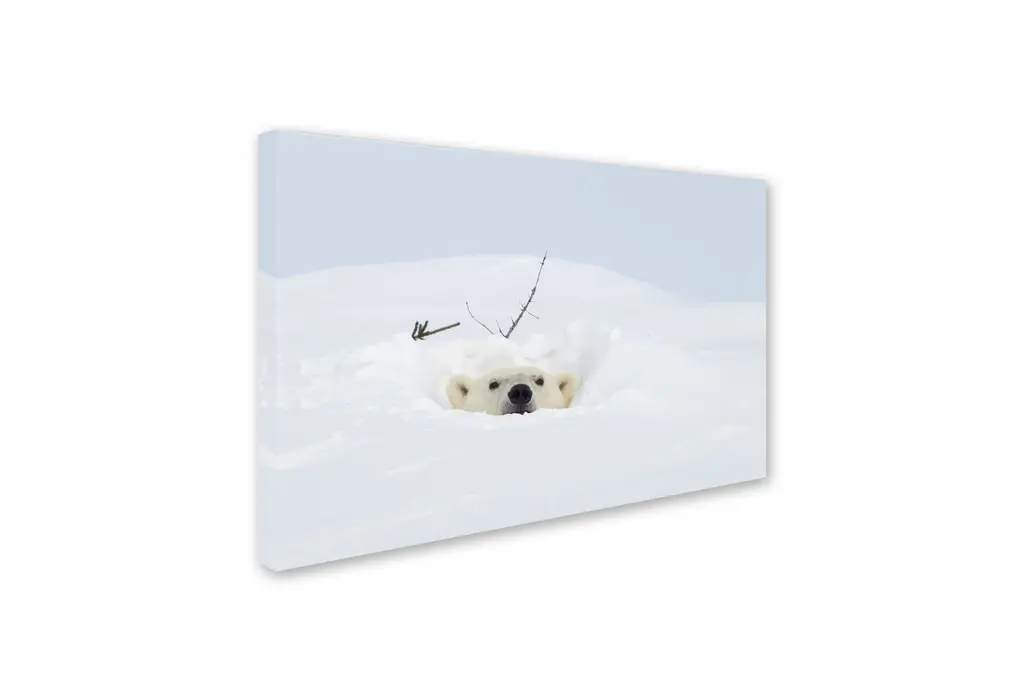 Artist: Robert Harding Picture LibrarySubject: AnimalsStyle: Natural ModernProduct Type: Gallery-Wrapped Canvas ArtMade in USAThis ready to hang, gallery-wrapped art piece features the head of a polar bear poking out of snow.Passionate travel photographer Robert Harding started Robert Harding World Imagery in 1974, staffing his agency purely with travel and photography obsessed individuals. This includes over 1100 photographers and videographers working in the far-flung corners of the globe. These personally beloved images convey the adventurous travel stories and experiences of the wonderful/crazy world out there. He has seen the travel and photography industries change almost beyond recognition and his camera people are constantly exploring where its all going next.Giclee (jee-clay) is an advanced printmaking process for creating high quality fine art reproductions. The attainable excellence that Giclee printmaking affords makes the reproduction virtually indistinguishable from the original piece. The result is wide acceptance of Giclee by galleries, museums, and private collectors. Gallery wrap is a method of stretching an artist's canvas so that the canvas wraps around the sides and is secured a hidden, wooden frame. This method of stretching and preparing a canvas allows for a frameless presentation of the finished painting.Materials: Canvas, 100% Cotton, Stretcher Bars, Poplar