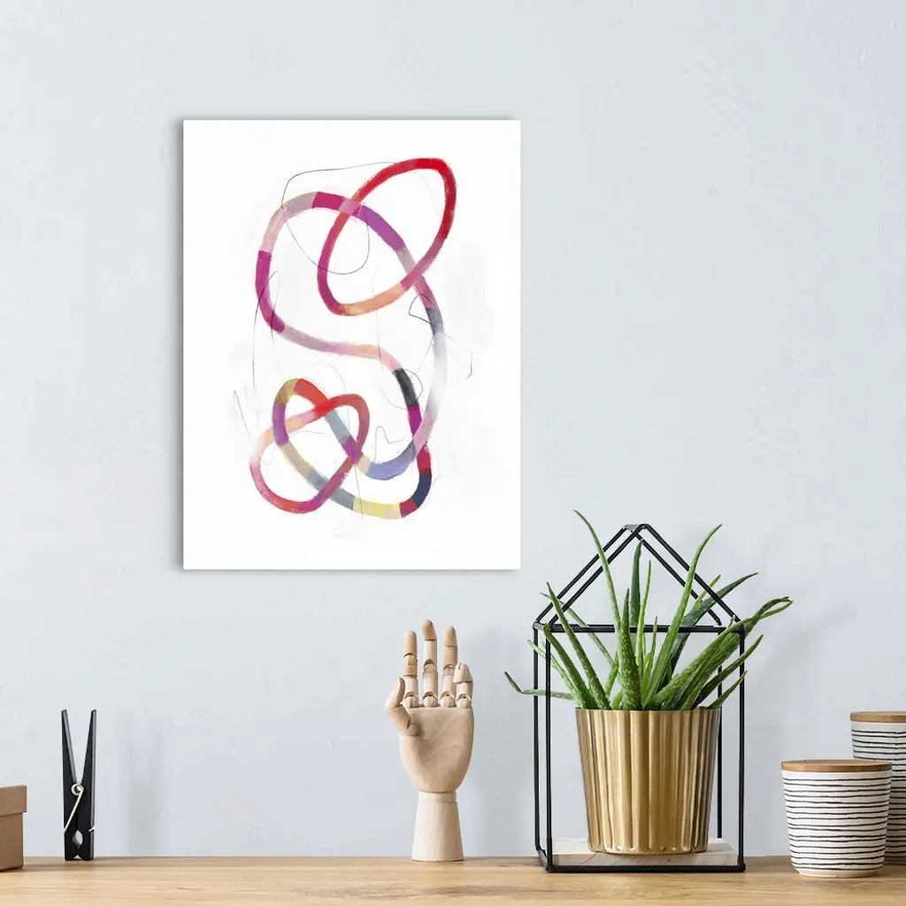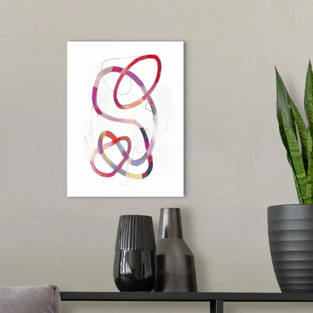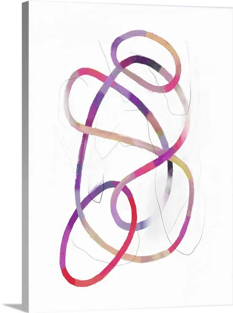 This contemporary artwork features intertwining noodles of striped color with sketched lines throughout.