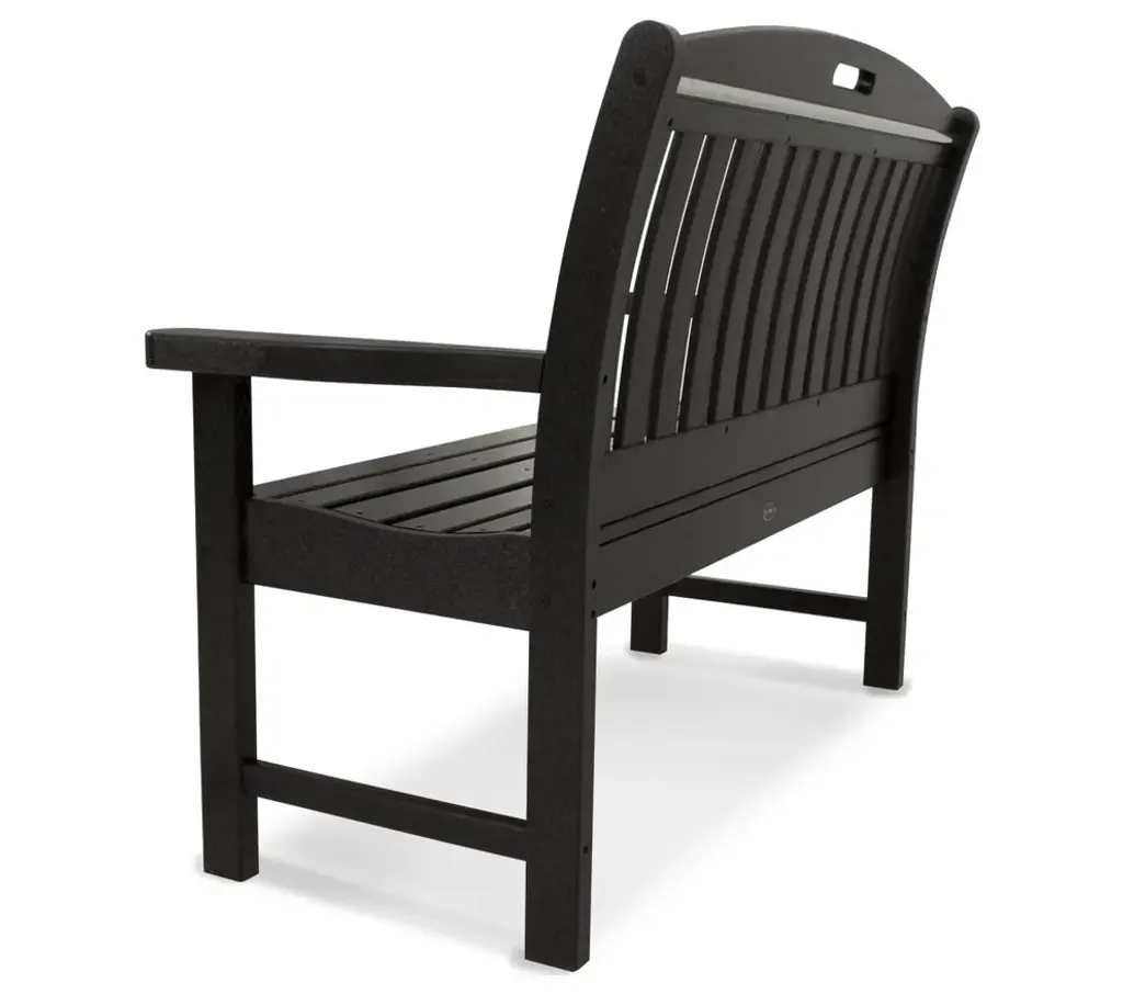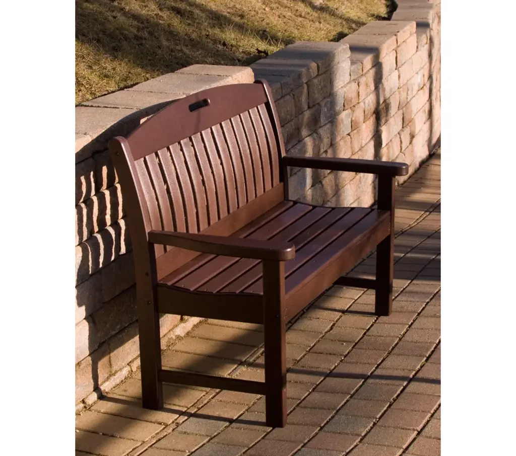 Sail away with someone special on this cozy bench that's just the right size for two. POLYWOOD furniture is constructed of solid POLYWOOD lumber that's available in a variety of attractive, fade-resistant colors. It won't splinter, crack, chip, peel or rot and it never needs to be painted, stained or waterproofed. It's also designed to withstand nature's elements as well as to resist stains, corrosive substances, salt spray and other environmental stresses. Best of all, POLYWOOD furniture is made in the USA and backed by a 20-year warranty.Constructed of genuine POLYWOOD lumber, a proprietary blend of plastics which includes recycled milk jugs and detergent bottlesPOLYWOOD lumber requires no painting, staining, waterproofing, or similar maintenanceSolid, heavy-duty construction withstands nature's elementsPOLYWOOD lumber does not splinter, crack, chip, peel or rot and it is resistant to corrosive substances such as oil, salt spray and other environmental stressesMarine-grade quality hardwareEasy to clean with soap and waterContoured for greater comfortAvailable in a variety of attractive, fade-resistant colors20-year residential warranty; 3-year commercial warrantyMade in the USA