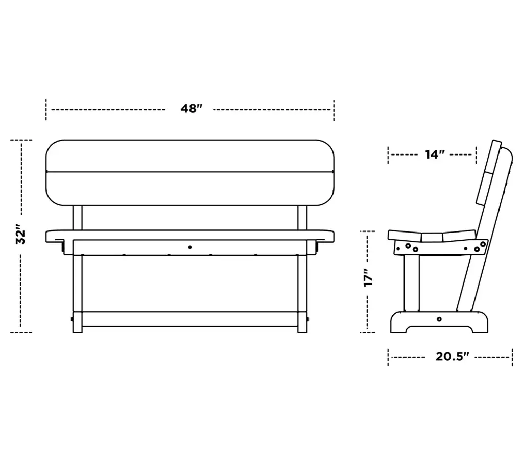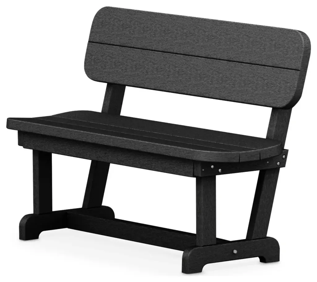 Parks and playgrounds will be greatly enhanced by this comfortable and spacious bench. POLYWOOD furniture is constructed of solid POLYWOOD lumber that's available in a variety of attractive, fade-resistant colors. It won't splinter, crack, chip, peel or rot and it never needs to be painted, stained or waterproofed. It's also designed to withstand nature's elements as well as to resist stains, corrosive substances, salt spray and other environmental stresses. Best of all, POLYWOOD furniture is made in the USA and backed by a 20-year warranty.Constructed of genuine POLYWOOD lumber, a proprietary blend of plastics which includes recycled milk jugs and detergent bottlesPOLYWOOD lumber requires no painting, staining, waterproofing, or similar maintenanceSolid, heavy-duty construction withstands nature's elementsPOLYWOOD lumber does not splinter, crack, chip, peel or rot and it is resistant to corrosive substances such as oil, salt spray and other environmental stressesMarine-grade quality hardwareEasy to clean with soap and waterContoured for greater comfortAvailable in a variety of attractive, fade-resistant colors20-year residential warranty; 3-year commercial warrantyMade in the USA