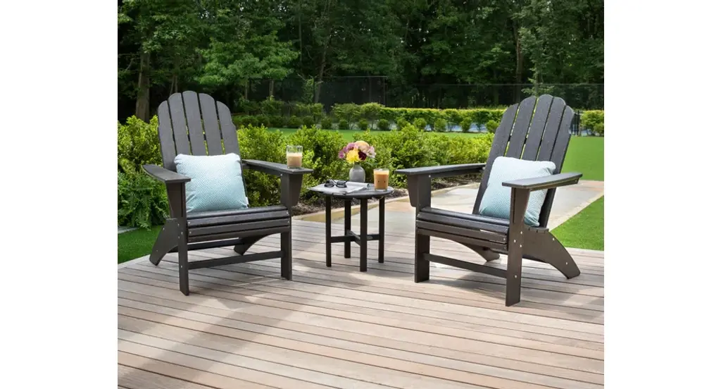Create a relaxing spot for two with the Vineyard 3-Piece Curveback Adirondack Set, which includes spacious chairs featuring curved back slats and waterfall fronts for added comfort and a Round 18" Side Table. The classic look of the chairs complements any outdoor space while the side table provides the perfect place to set your drinks.Includes (2) Vineyard Curveback Adirondack Chairs and (1) Round 18" Side TableChairs feature oversized seat, curved back slats, and waterfall frontsBuilt to withstand a range of climates including hot sun, snowy winters, and strong coastal windsConstructed of genuine POLYWOOD lumber, a proprietary blend of plastics which includes recycled milk jugs and detergent bottlesDurable, all-weather lumber not prone to splinter, crack, chip, peel, or rot20-year residential warranty; 3-year commercial warrantyCleans easily with soap, water, and a soft bristle brushUV protectant and color continuously throughout the HDPE material; requires no painting or waterproofingMarine-grade quality hardwareMade in the USAAssembly required