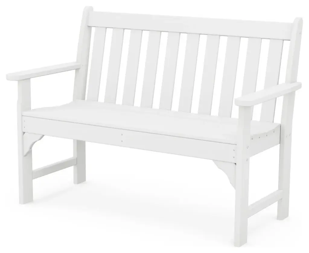 This cozy bench is perfect for stargazing on a warm summer night. POLYWOOD furniture is constructed of solid POLYWOOD lumber that's available in a variety of attractive, fade-resistant colors. It won't splinter, crack, chip, peel or rot and it never needs to be painted, stained or waterproofed. It's also designed to withstand nature's elements as well as to resist stains, corrosive substances, salt spray and other environmental stresses. Best of all, POLYWOOD furniture is made in the USA and backed by a 20-year warranty.Constructed of genuine POLYWOOD lumber, a proprietary blend of plastics which includes recycled milk jugs and detergent bottlesPOLYWOOD lumber requires no painting, staining, waterproofing, or similar maintenanceSolid, heavy-duty construction withstands nature's elementsPOLYWOOD lumber does not splinter, crack, chip, peel or rot and it is resistant to corrosive substances such as oil, salt spray and other environmental stressesMarine-grade quality hardwareEasy to clean with soap and waterContoured for greater comfortAvailable in a variety of attractive, fade-resistant colors20-year residential warranty; 3-year commercial warrantyMade in the USA
