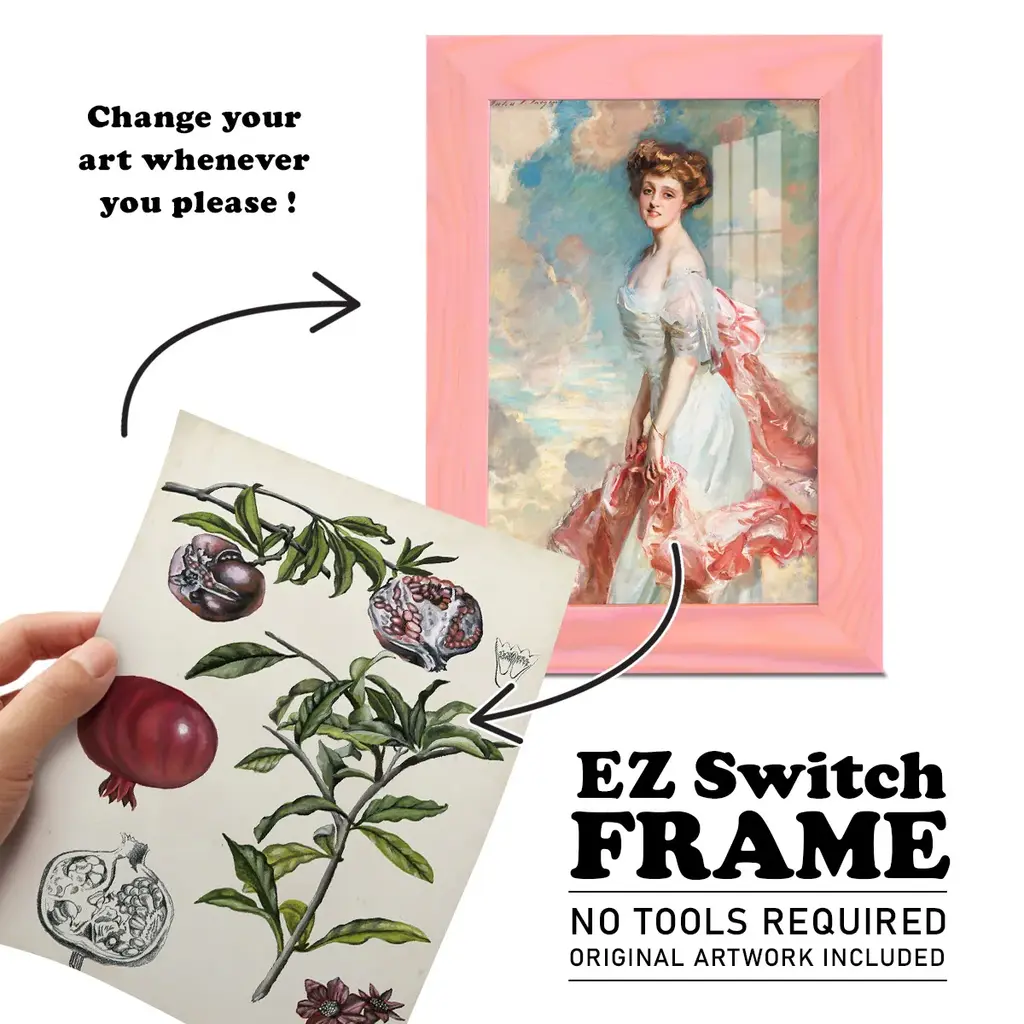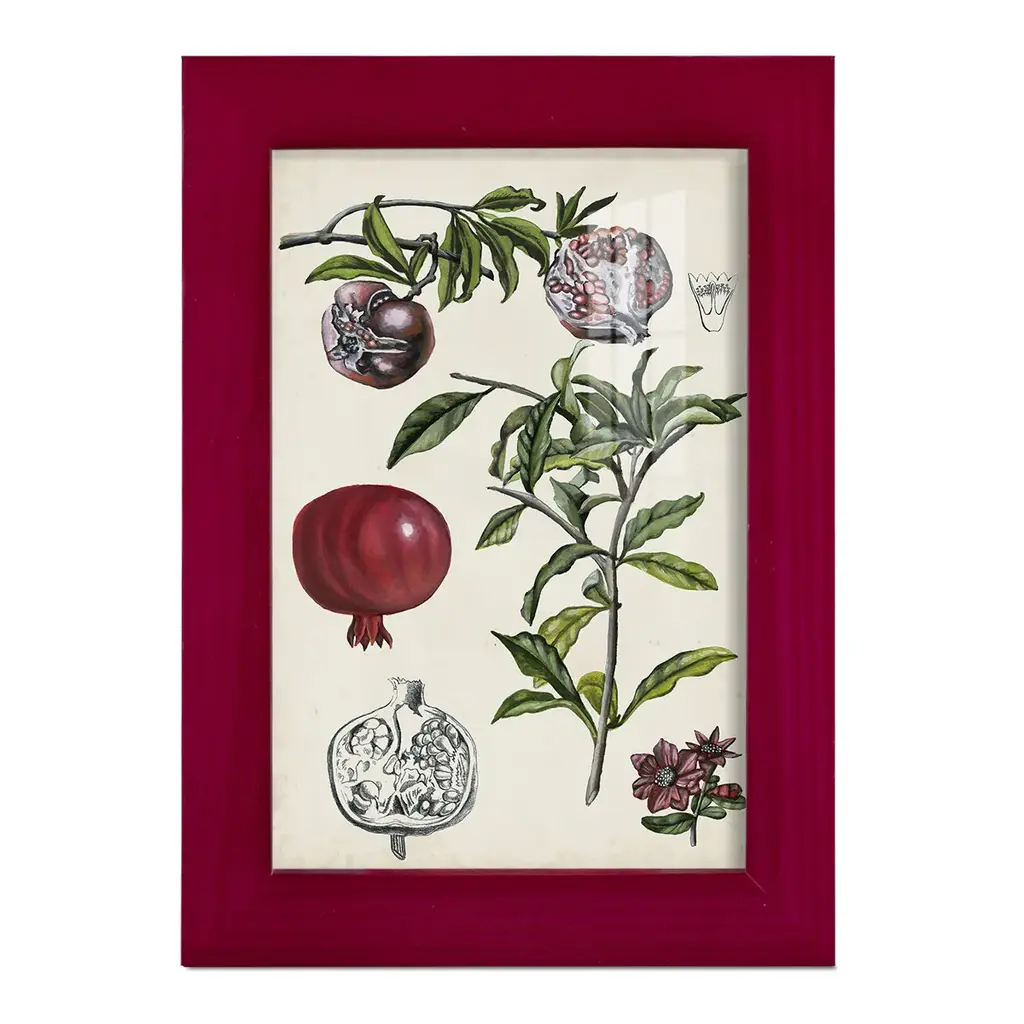 Pomegranate Composition I -EZ SWITCH Framed Print w/glass-Cherry Red A delightful, framed print. Featuring a solid wood frame with real wood glass. This premium print is giclee quality. In addition, every frame features a removable back and table top stand. This allows you to change your art in the future or to just stand the art on a table for a new look. We are sure you'll enjoy our new series of EZ SWITCH Framed Art. Solid Wood Frame Real Glass Removable / Replaceable Art Built in Tabletop Stand Sizes range from 4x6 up to 12x15 - buy just one or pair them up as sets as you see fit.