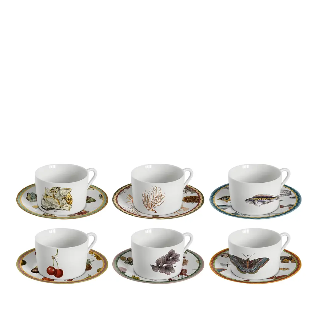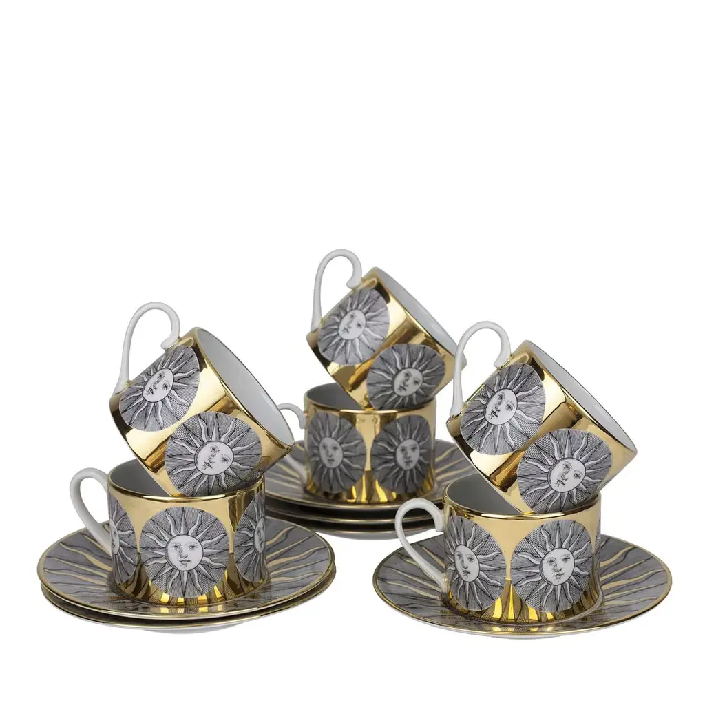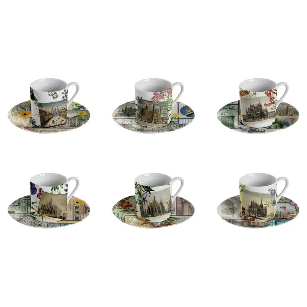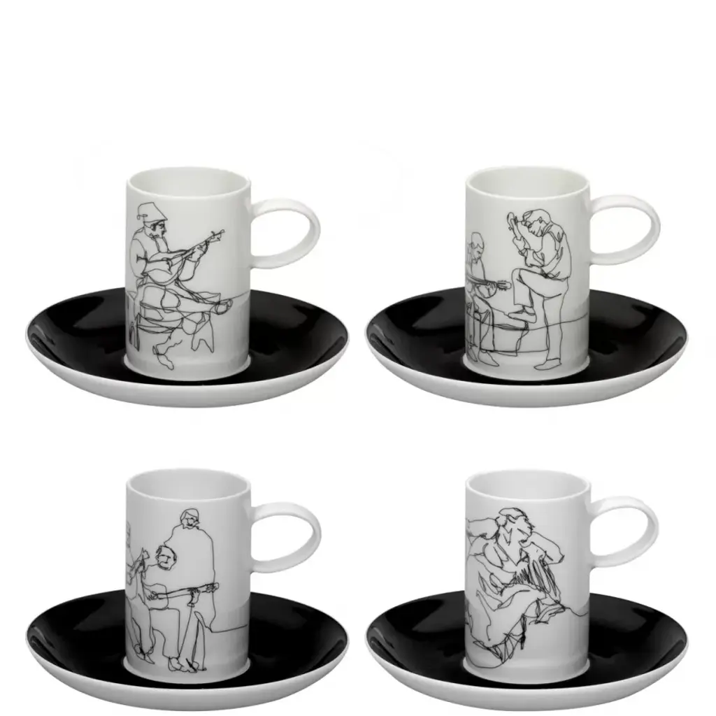 Pompei Set Of 6 Porcelain Espresso Cups With Grotesque Drawings