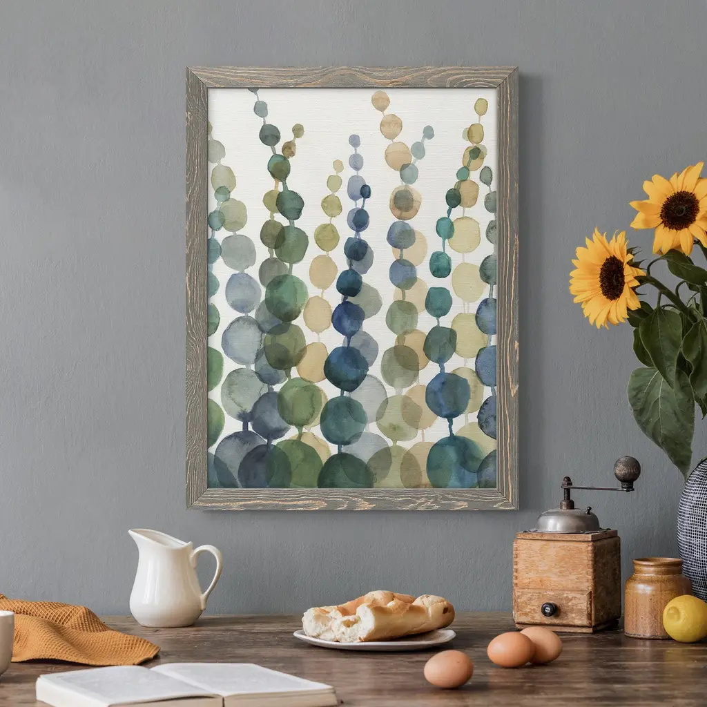 Pompom Botanical I Premium Framed Canvas - Ready to Hang Framed in distressed wood and available in an array of sizes and colors Each piece is joined and assembled by hand and comes ready to hang FRAMED GICLEE CANVAS HAND STRETCHED GALLERY WRAPPED CANVAS READY TO HANG MADE IN THE USA SOLID WOOD FRAME MADE IN USA FADE RESISTANT GICLEE PRINTING on Canvas