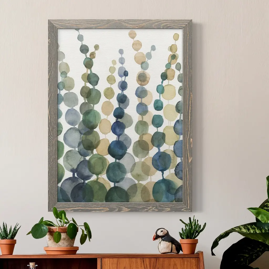 Pompom Botanical I Premium Framed Canvas - Ready to Hang Framed in distressed wood and available in an array of sizes and colors Each piece is joined and assembled by hand and comes ready to hang FRAMED GICLEE CANVAS HAND STRETCHED GALLERY WRAPPED CANVAS READY TO HANG MADE IN THE USA SOLID WOOD FRAME MADE IN USA FADE RESISTANT GICLEE PRINTING on Canvas