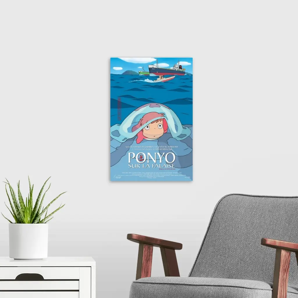 Ponyo on the Cliff - Movie Poster - French wall art for home and office decor. Discover canvas art prints, photos, mural, big canvas art and framed wall art in GreatBigCanvas.com's varied collections.