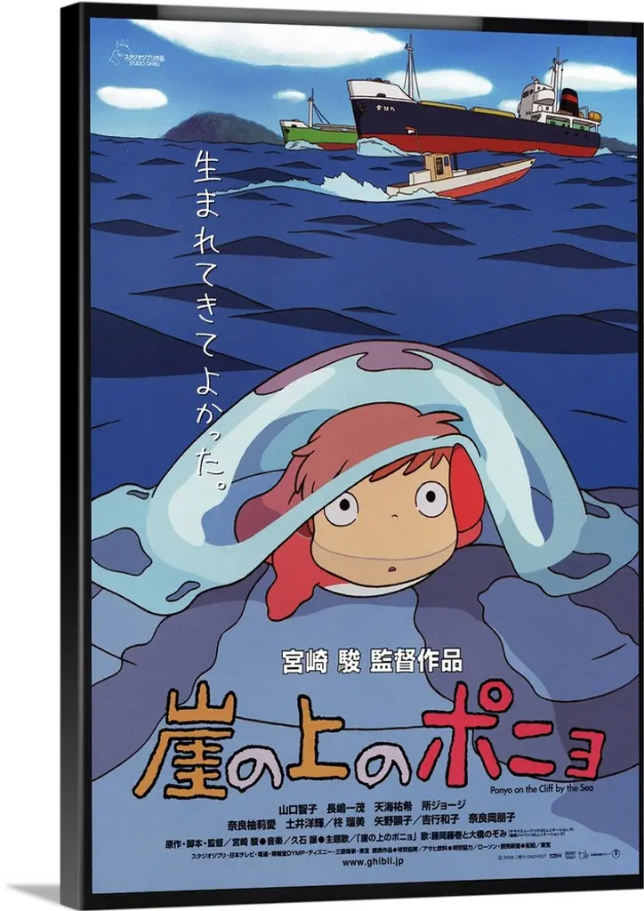 Ponyo on the Cliff - Movie Poster - Japanese wall art for home and office decor. Discover canvas art prints, photos, mural, big canvas art and framed wall art in GreatBigCanvas.com's varied collections.