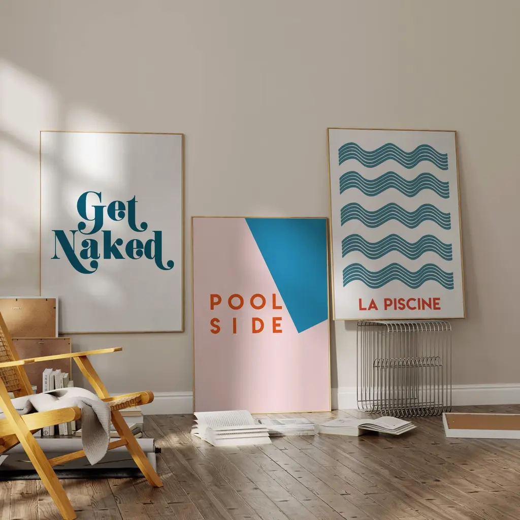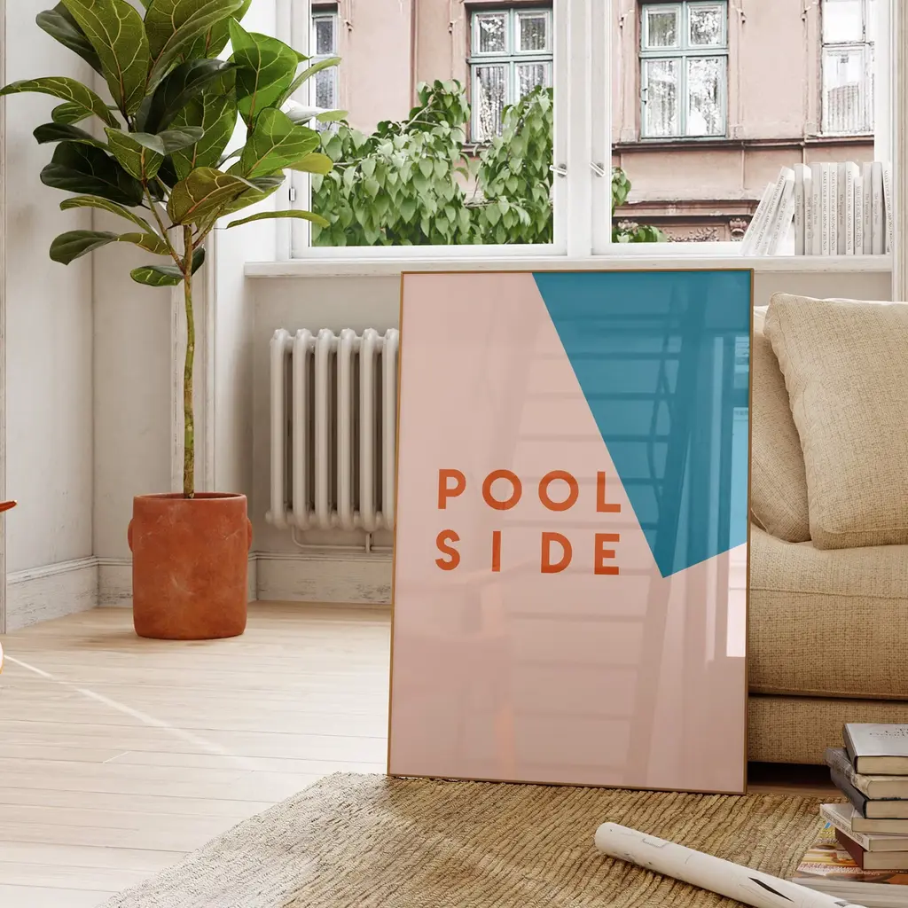 Make a bright statement with our pool side abstract art, inspired by a Wes Anderson colour palette with 1960s California tones.A playful summer piece for your walls and a great side kick for your Yucca and cheese plants. Using pastel blue and millennial pink tones and Giclée printed on Munken pure smooth cream paper which is certified by the Rainforest Alliance Program for FSC® Standards.