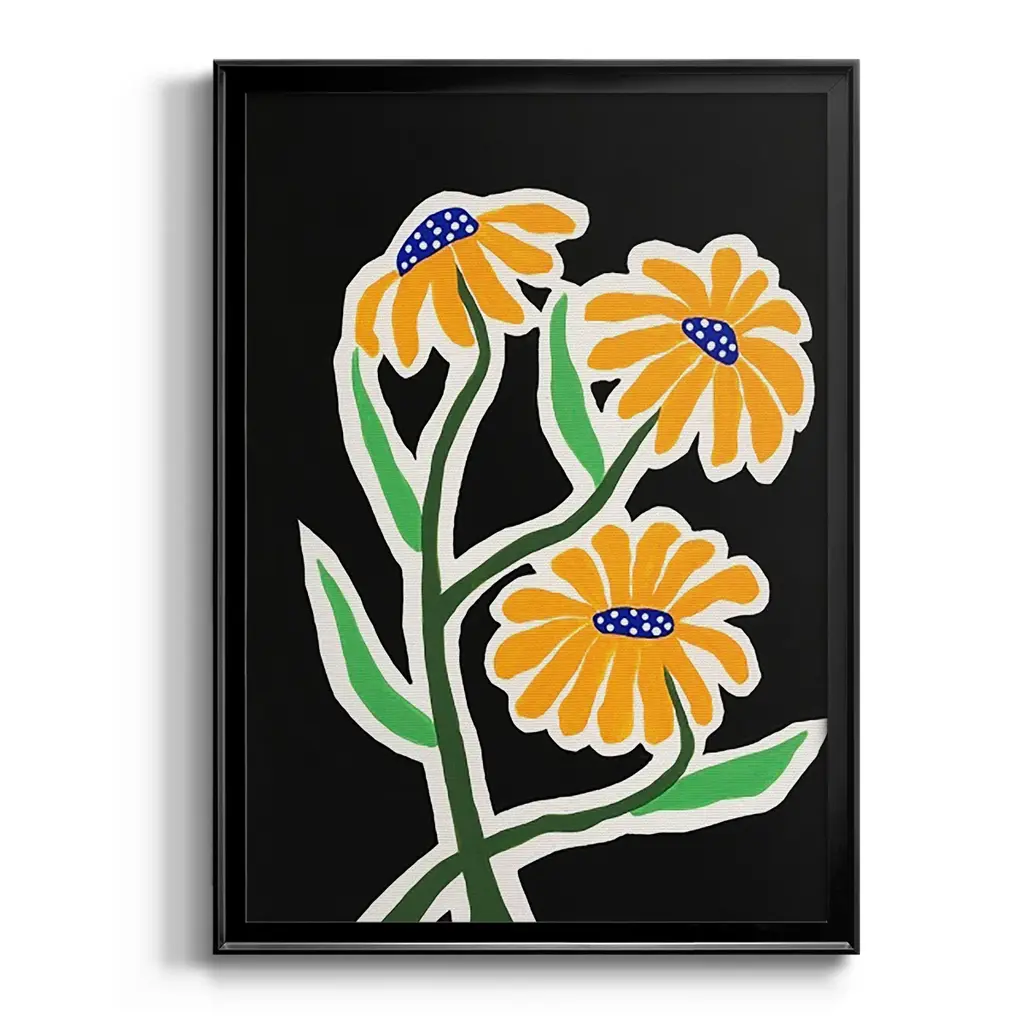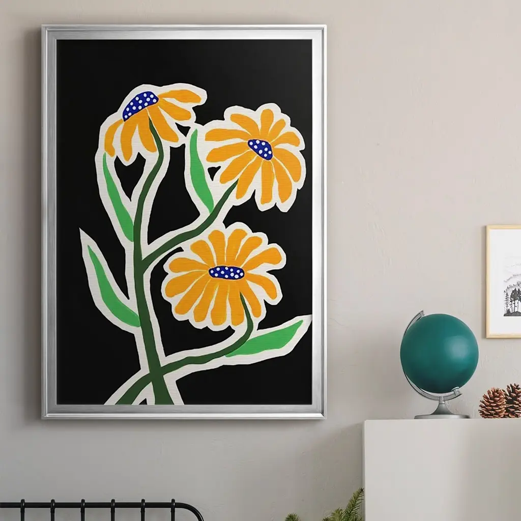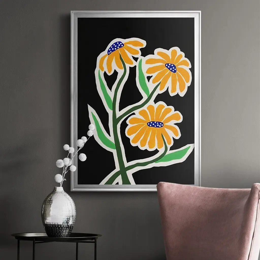 Pop Flowers I Premium Framed Print - Ready to Hang A Premium Framed Print created to last. Framed in distressed wood and available in an array of sizes and colors Featuring a beveled a solid wood stretcher bar, each piece comes ready to hand 4 SIZES AVAILABLE 30.5''X42.5'' - Overall Size 26.5'X36.5'' - Overall Size 22.5''x30.5'' - Overall Size 18.5''x24.5'' - Overall Size Each piece is made to order. Each piece comes with hanging hardware. Made in the USA Ready to Hang
