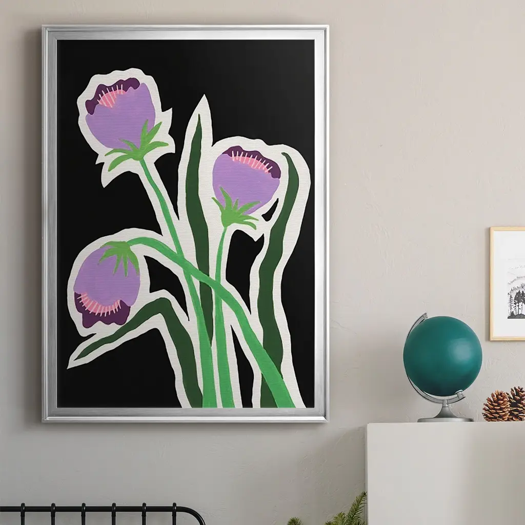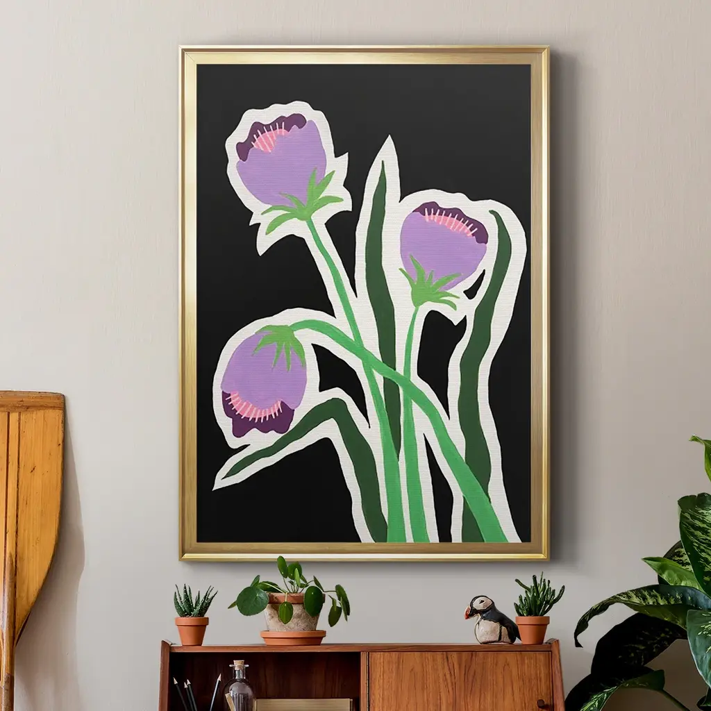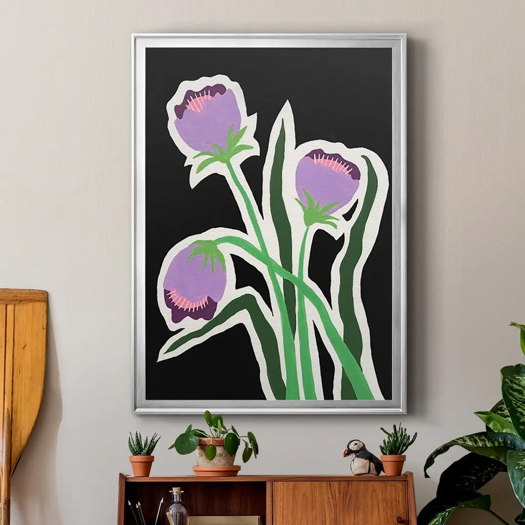 Pop Flowers II Premium Framed Print - Ready to Hang A Premium Framed Print created to last. Framed in distressed wood and available in an array of sizes and colors Featuring a beveled a solid wood stretcher bar, each piece comes ready to hand 4 SIZES AVAILABLE 30.5''X42.5'' - Overall Size 26.5'X36.5'' - Overall Size 22.5''x30.5'' - Overall Size 18.5''x24.5'' - Overall Size Each piece is made to order. Each piece comes with hanging hardware. Made in the USA Ready to Hang