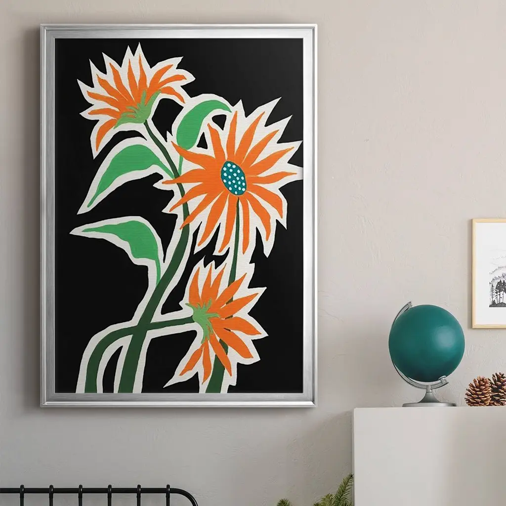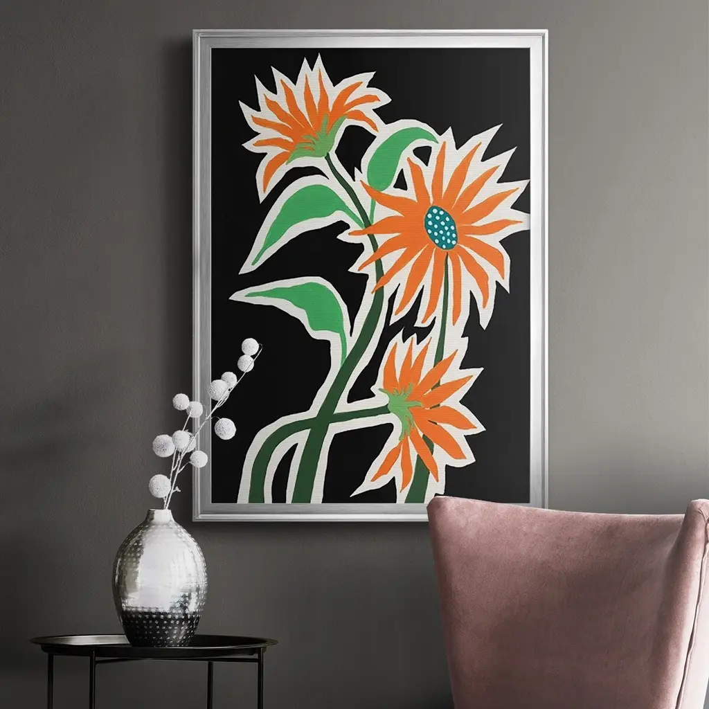 Pop Flowers III Premium Framed Print - Ready to Hang A Premium Framed Print created to last. Framed in distressed wood and available in an array of sizes and colors Featuring a beveled a solid wood stretcher bar, each piece comes ready to hand 4 SIZES AVAILABLE 30.5''X42.5'' - Overall Size 26.5'X36.5'' - Overall Size 22.5''x30.5'' - Overall Size 18.5''x24.5'' - Overall Size Each piece is made to order. Each piece comes with hanging hardware. Made in the USA Ready to Hang