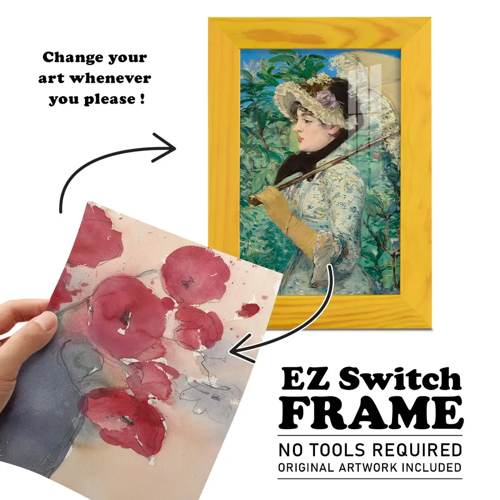 Pop of Red II -EZ SWITCH Framed Print w/glass-Cherry Red A delightful, framed print. Featuring a solid wood frame with real wood glass. This premium print is giclee quality. In addition, every frame features a removable back and table top stand. This allows you to change your art in the future or to just stand the art on a table for a new look. We are sure you'll enjoy our new series of EZ SWITCH Framed Art. Solid Wood Frame Real Glass Removable / Replaceable Art Built in Tabletop Stand Sizes range from 4x6 up to 12x15 - buy just one or pair them up as sets as you see fit.