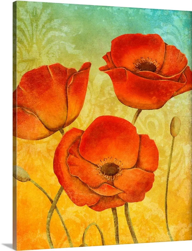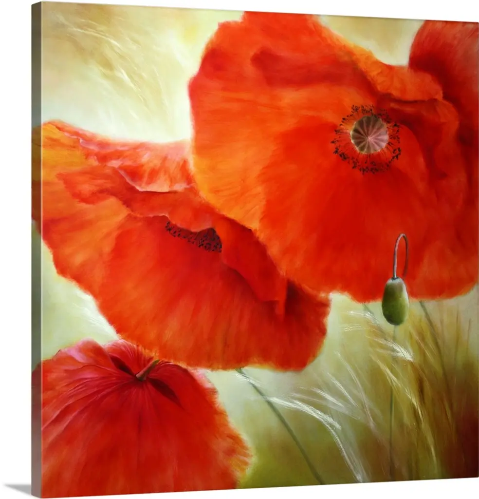 Bring contemporary abstraction to your home with this large 28W x 36H Metal Wall Art. This Poppies in Wheat Metal Artwork makes it the focal point of any room or office. - White gloss coating ensures colors are extra vibrant with light reflection.- Aluminum grade sheet metal with 1 inch mounting frame on the back giving the illusion that the artwork is floating on the wall..- Mounting brackets are included along with instructions.- High quality digital images are created directly into a glossy aluminum panel producing a stunning and captivating print into the glossy finish of the metal.- Water, fire and scratch resistant HD aluminum panels.- Looks better than any photo paper and guaranteed to last at least 20 years- Easy to clean with a microfiber cloth. Colors are far superior to regular canvas art. - Easy to hang