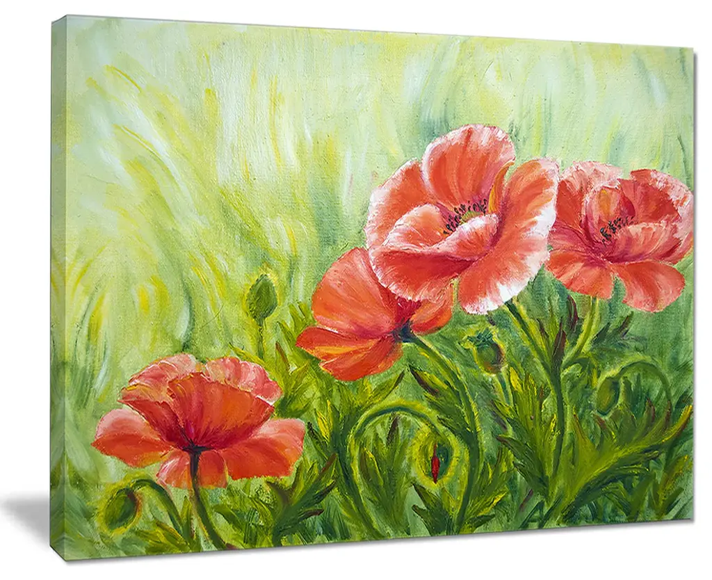 The Poppies in Wheat canvas art print is sure to make an impression on anyone who sees it. This artwork is gallery wrapped around a 1-inch solid wood frame and arrives carefully packaged and entirely ready to hang on the wall. Design Art only uses the highest resolution and pigments to ensure a crisp colorful print that is never faded or pixelated. This artwork is sure to be a conversation starter in any home or office.
